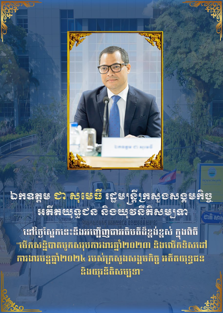 • ឯកឧត្តម ជា សុមេធី រដ្ឋមន្ត្រីក្រសួងសង្គមកិច្ច អតីតយុទ្ធជន និងយុវនីតិសម្បទា បានអញ្ជើញចូលរួមកិច្ចប្រជុំពេញអង្គគណៈរដ្ឋមន្រ្តី