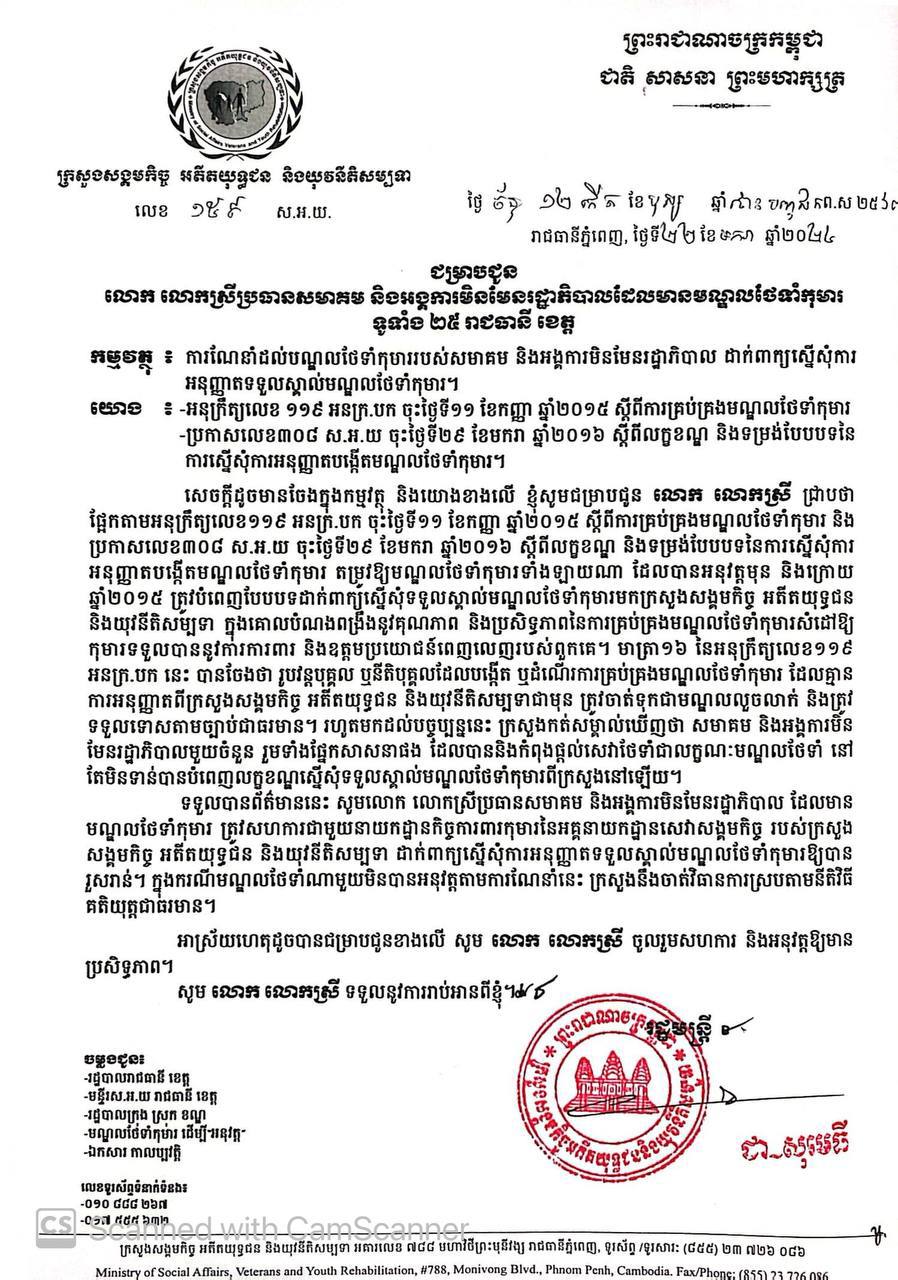 • ឯកឧត្តម ញ៉ឹក វណ្ណារ៉ា រដ្ឋលេខាធិការ ក្រសួងសង្គមកិច្ច អតីតយុទ្ធជន និងយុវនីតិសម្បទា បានដឹកនាំក្រុមការងារ ដើម្បីពិភាក្សា ស្តីពីគម្រោងបង្កើតមជ្ឈមណ្ឌលសំចត និងស្តារនីតិសម្បទា ខេត្តស្វាយរៀង