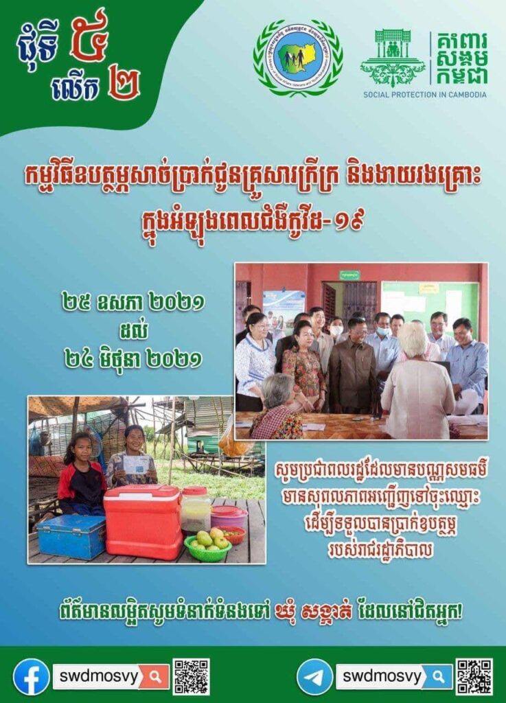 • កម្មវិធីឧបត្ថម្ភសាច់ប្រាក់ជូនស្រ្តីមានផ្ទៃពោះ និងកុមារអាយុក្រោម២ឆ្នាំក្នុងគ្រួសារក្រីក្រ