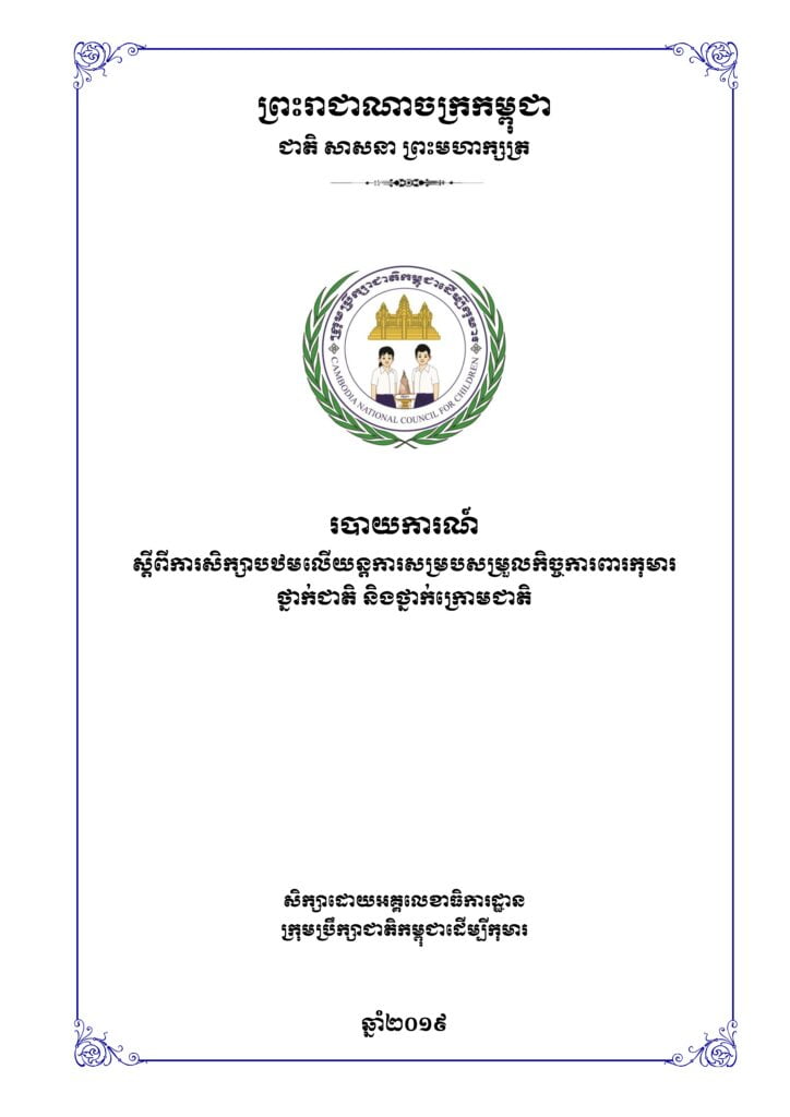 • របាយការណ៍ ស្តីពីការសិក្សាបឋមលើយន្តការសម្របសម្រួលកិច្ចការពារកុមារថ្នាក់ជាតិ និងថ្នាក់ក្រោមជាតិ