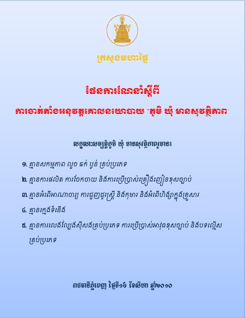 • ផែនការណែនាំស្តីពីការចាត់តាំងអនុវត្តគោលនយោបាយ ភូមិ ឃុំ មានសុវត្ថិភាព