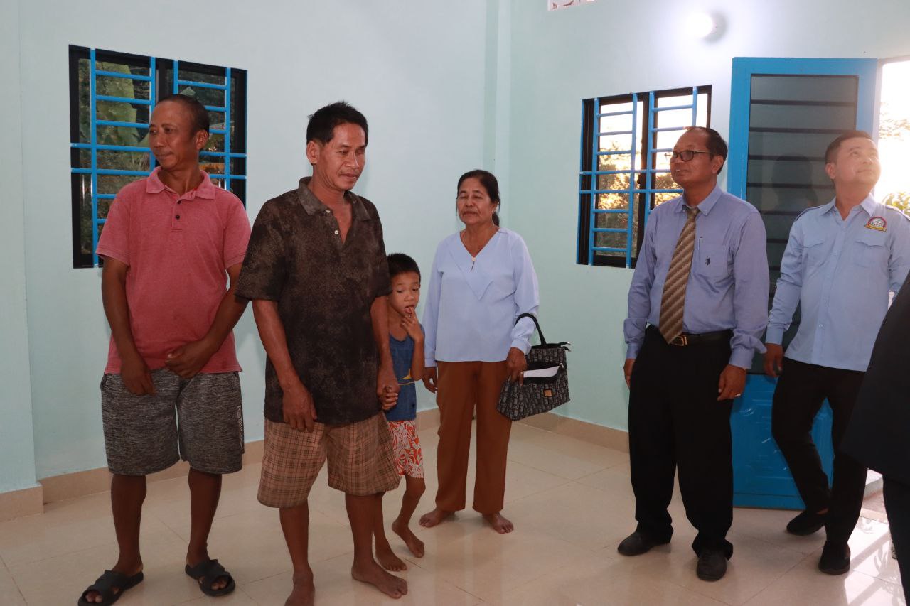 Stung Treng: The PWDs Foundation, under the Ministry of Social Affairs, Veterans and Youth Rehabilitation, presented a 4 x 6-meter house to Meas Don, a 54-year-old individual with visual impairment in both eyes. His right eye was blinded in 1979 due to a landmine incident, and his left eye lost vision in 2017 due to illness. Meas Don resides with his mentally disabled daughter in Kaing Memay village, Preah Bat Commune, Stung Treng city, Stung Treng province.
