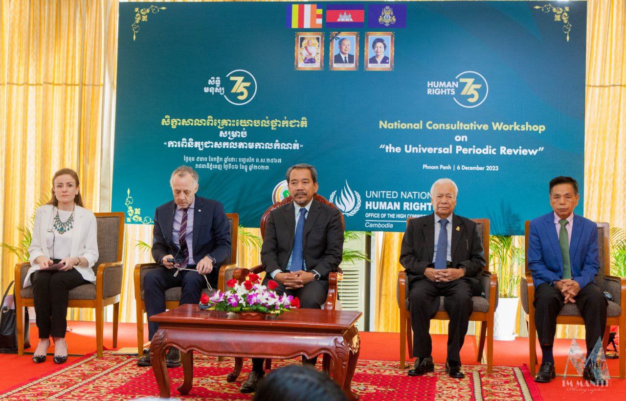 Phnom Penh: On Wednesday, December 6, 2023, H.E Sok Buntha, Secretary of State and representative of the Ministry of Social Affairs, Veterans, and Youth Rehabilitation, participated in the National Consultative Workshop for Universal Periodic Review (UPR). The day-long workshop, conducted in collaboration with the Office of the United Nations High Commissioner for Human Rights in Cambodia, aimed to gather comments and input on Cambodia’s fourth-round draft UPR Report. The event was organized to align with the decisions of the Human Rights Council, emphasizing extensive consultations, particularly with civil society.