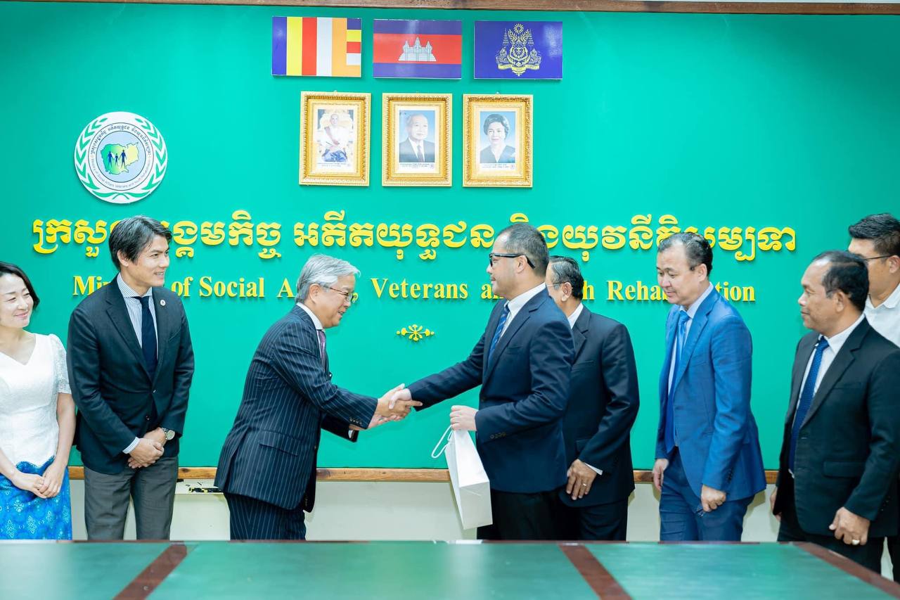 Phnom Penh: In the afternoon of December 14, 2023, H.E Chea Somethy, Minister of Social Affairs, Veterans and Youth Rehabilitation, engaged in a courtesy visit and held discussions with the Ambassador of Japan to the Kingdom of Cambodia, along with his colleagues and the President of JICA in Cambodia. The meeting took place at the Ministry of Social Affairs, Veterans, and Youth Rehabilitation.