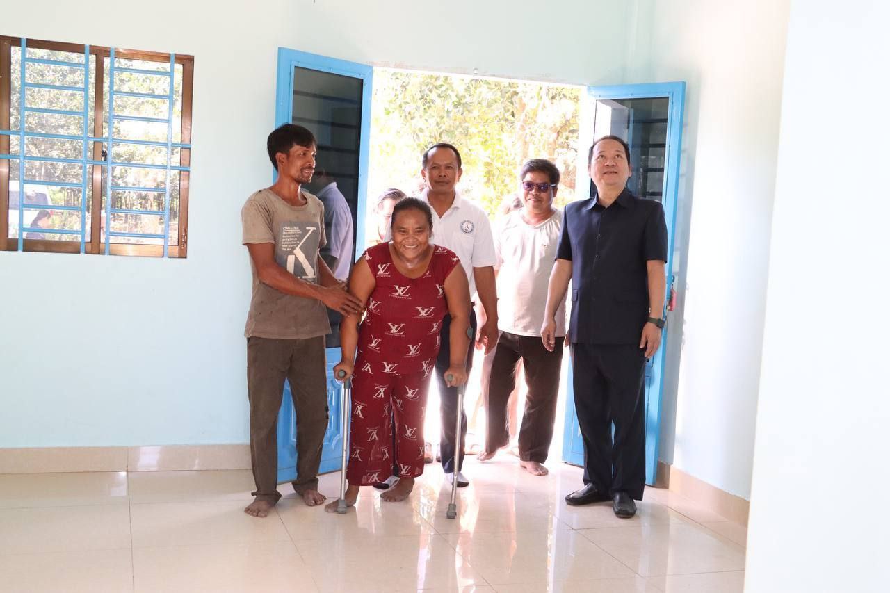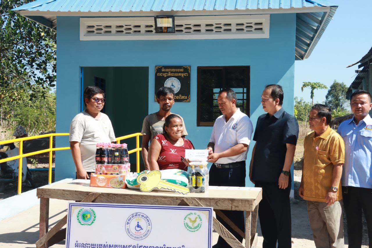 Mondulkiri – On December 29, 2023, the PWDs Foundation handed over a 4 x 6 meter house, constructed with bricks and a zinc roof, to Bun Soknhim, a 35-year-old woman with disability in her right leg since birth. She resides with her six-member family in O’Am village, Sre Khtom commune, Keo Seima district, Mondulkiri province.