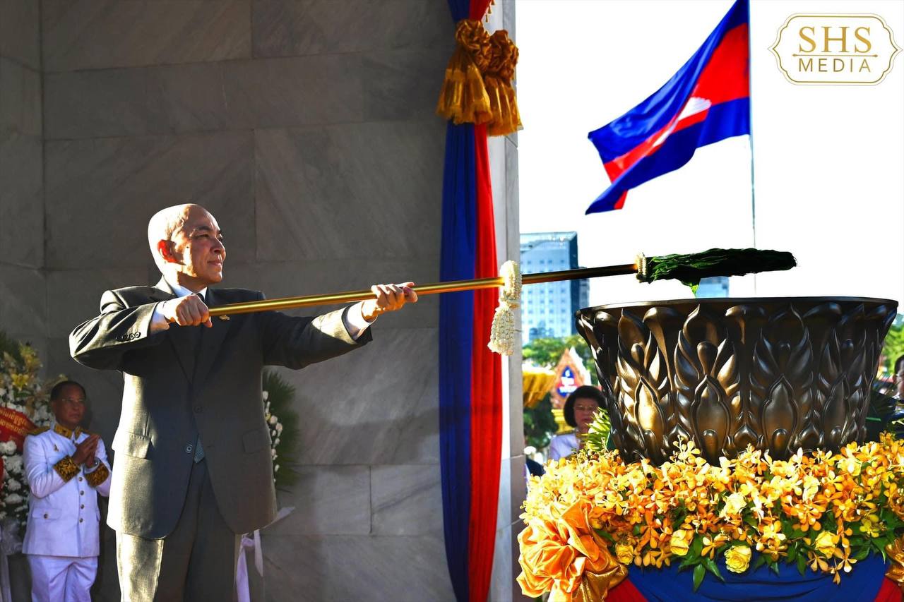 The Flame Extinguishing Ceremony took place under the royal presence of His Majesty King Norodom Sihamoni, the reigning monarch of the Kingdom of Cambodia. The event saw the participation of government officials, armed forces, youth, students, and the general public.