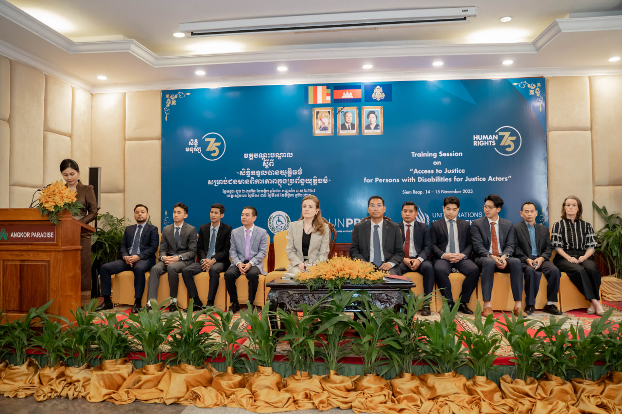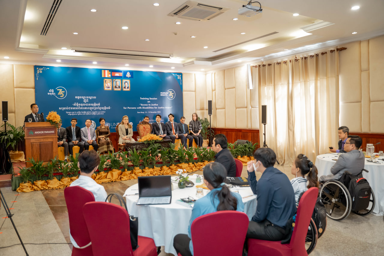 Siem Reap – In an impactful address at the Angkor Paradise Hotel during the opening ceremony of the “Access to Justice for Persons with Disabilities for Justice Actors” training course, H.E. Em Chan Makara, Secretary of State and Secretary General of the Disability Action Council, representing H.E. Chea Somethy, Minister of Social Affairs, Veterans, and Youth Rehabilitation, called for collaborative efforts to ensure the freedom of persons with disabilities from exploitation, violence, and violations.