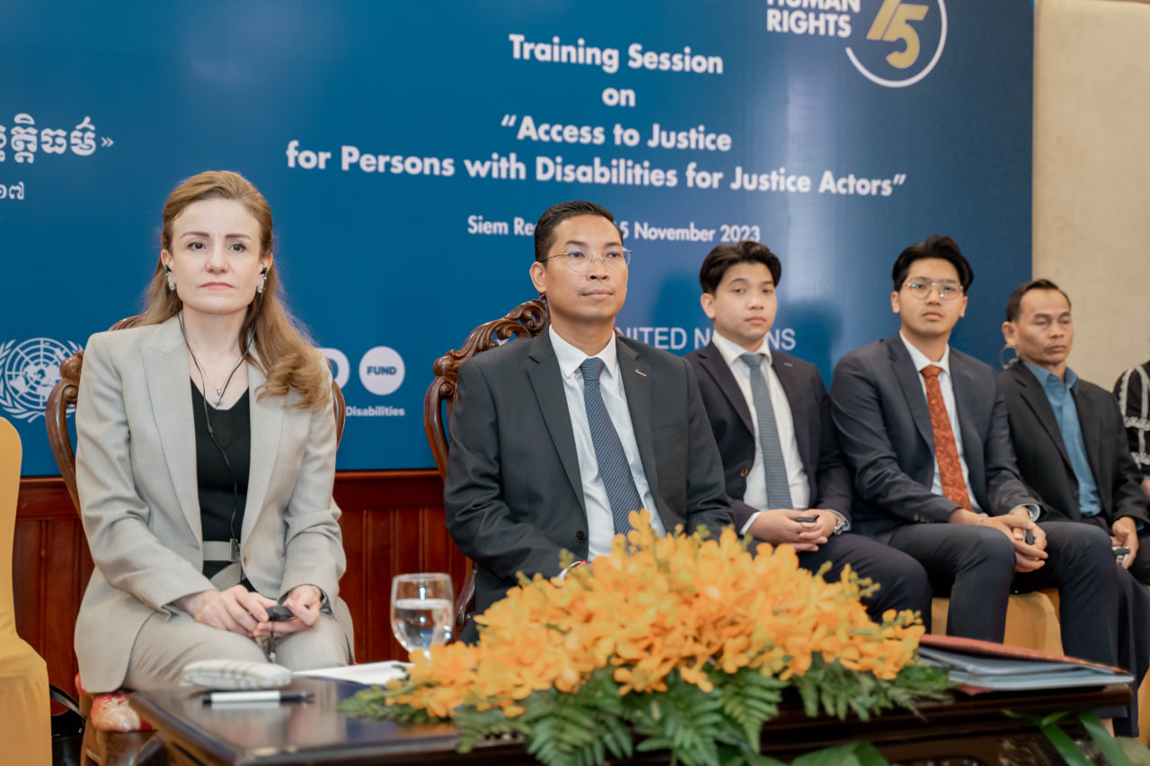 Addressing a diverse audience, including the representative of the Office of the United Nations High Commissioner for Human Rights in Cambodia H.E. Roueida El Hage, Mrs. Manny Raingsey (Deputy Governor of Siem Reap Province), Deputy Prosecutors, and Judges, H.E. Em Chan Makara emphasized the significance of protecting the integrity and rights of individuals with disabilities.