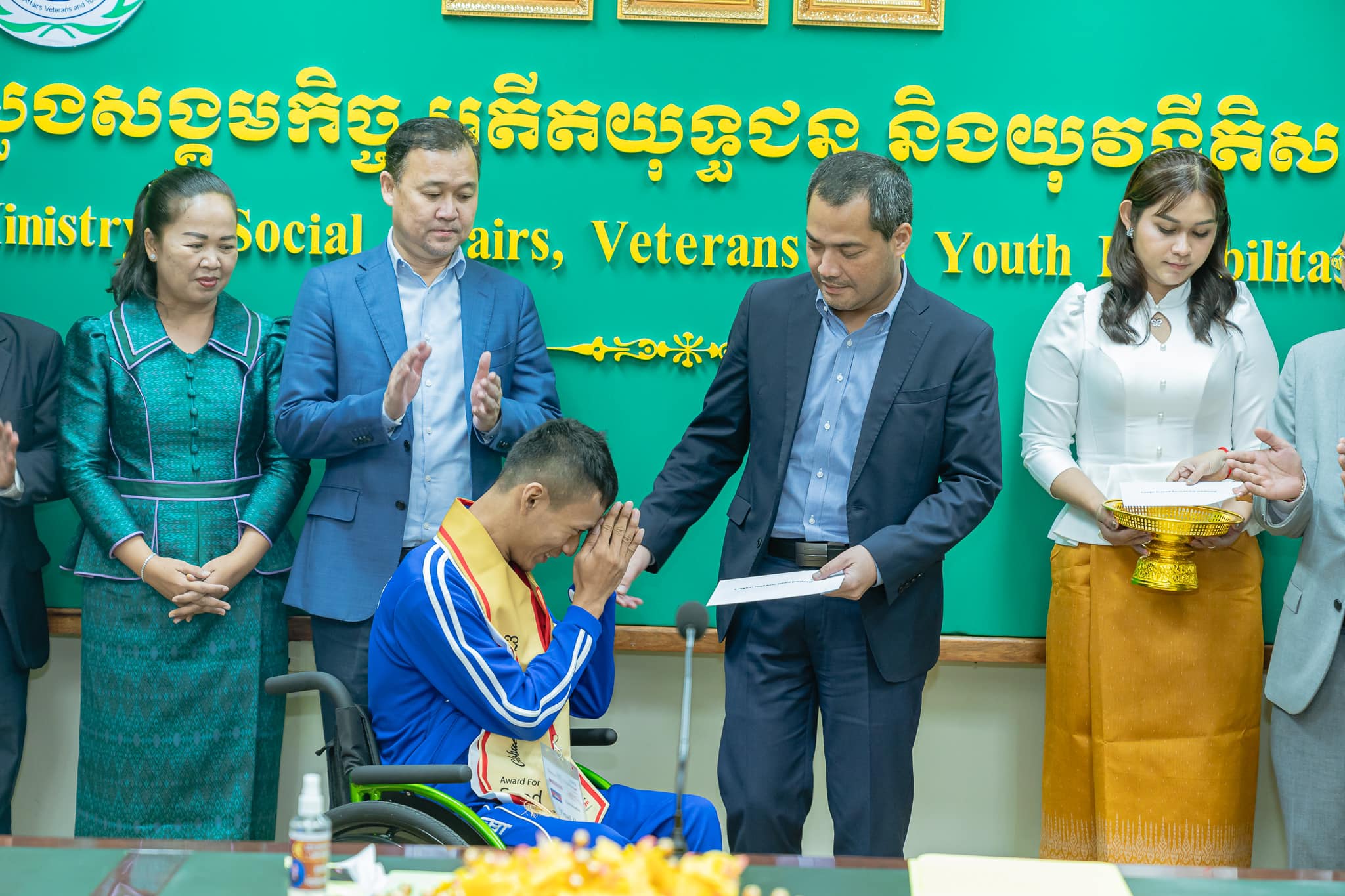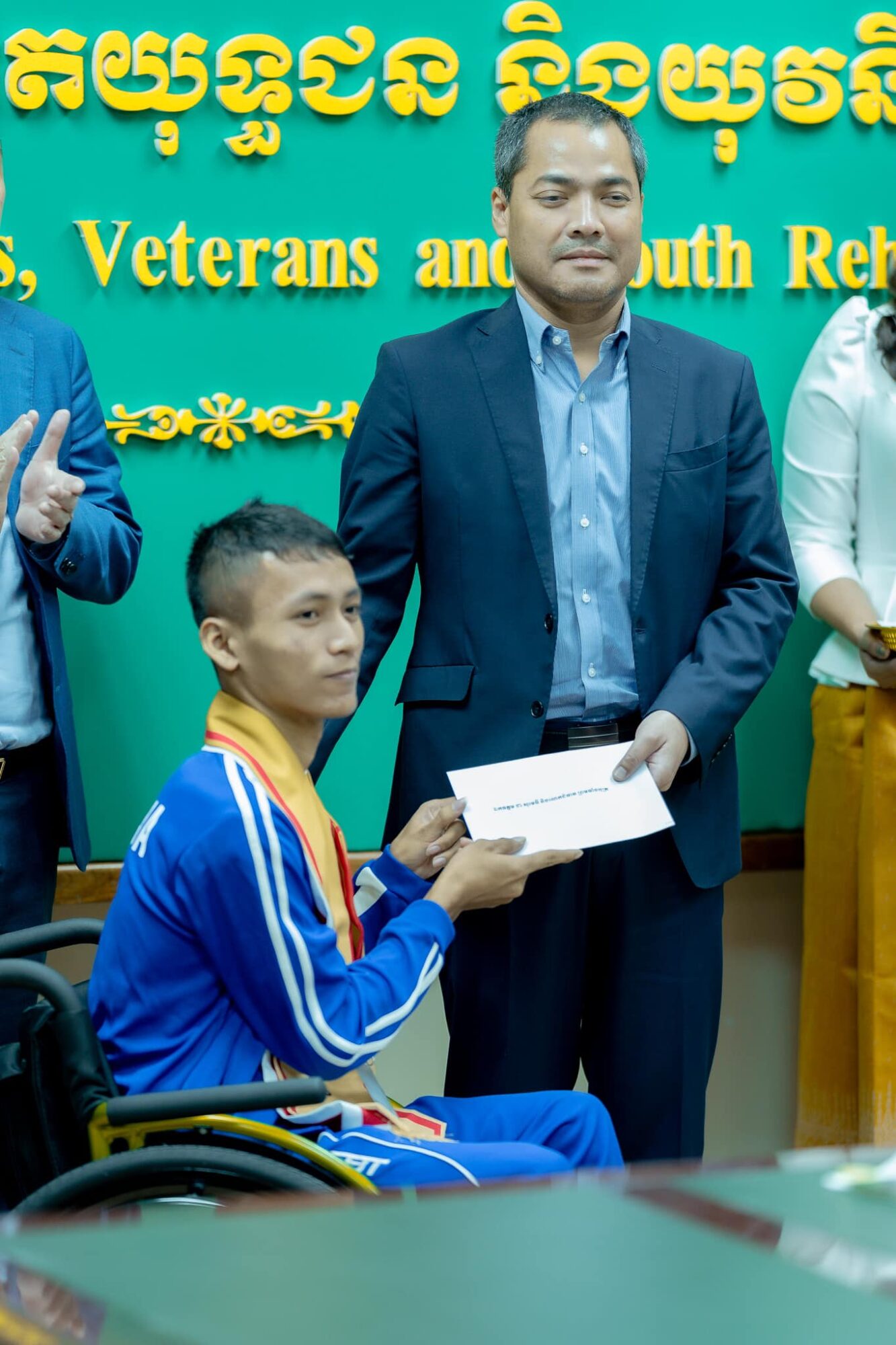 H.E Chea Somethy reiterated his congratulations to these young individuals with disabilities, acknowledging their dedication to bringing home gold and bronze medals despite the intense competition. He further encouraged other young people with disabilities to strive for excellence, emphasizing the importance of learning and participating in future competitions to showcase the remarkable abilities of Cambodia’s youth with disabilities.