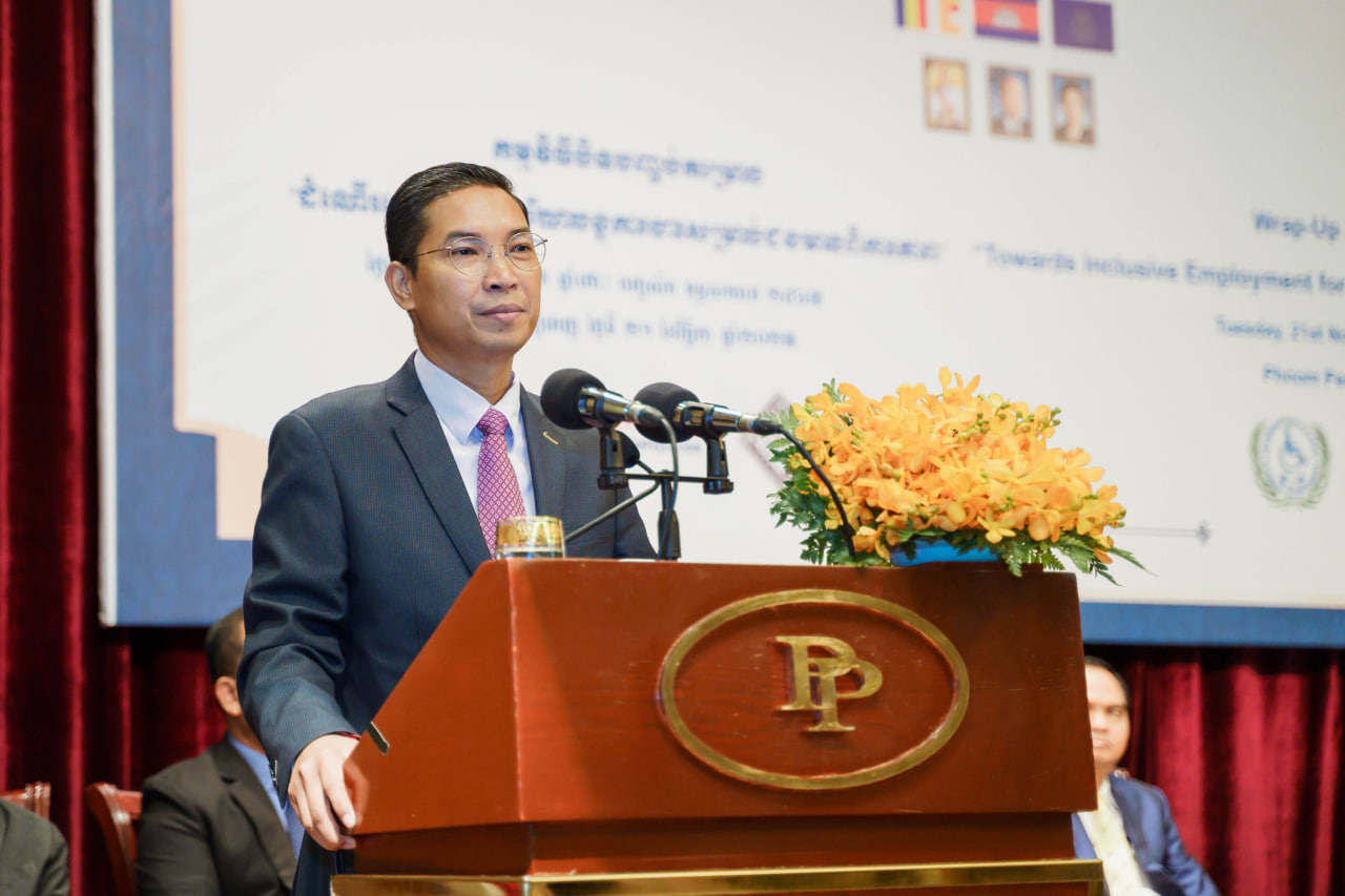 Representing H.E Chea Somethy, Minister of Social Affairs, Veterans and Youth Rehabilitation, H.E Em Chan Makara highlighted the challenge of obtaining accurate employment data for people with disabilities. Despite the difficulty, it is estimated that the employment rate for individuals with disabilities lags behind that of their non-disabled counterparts.