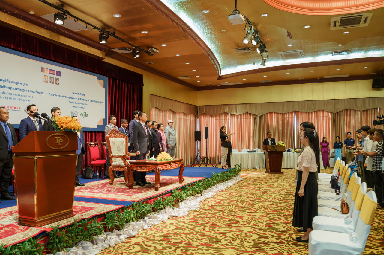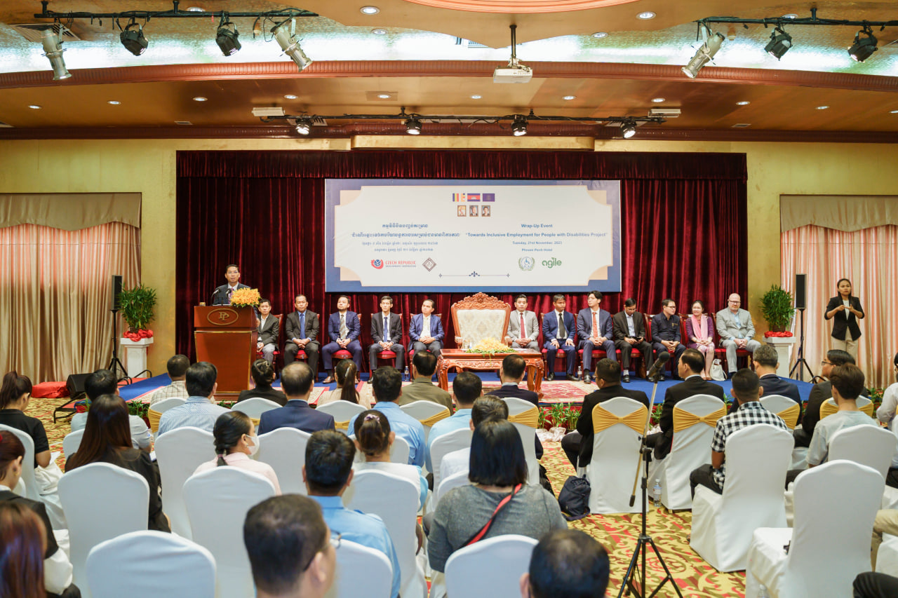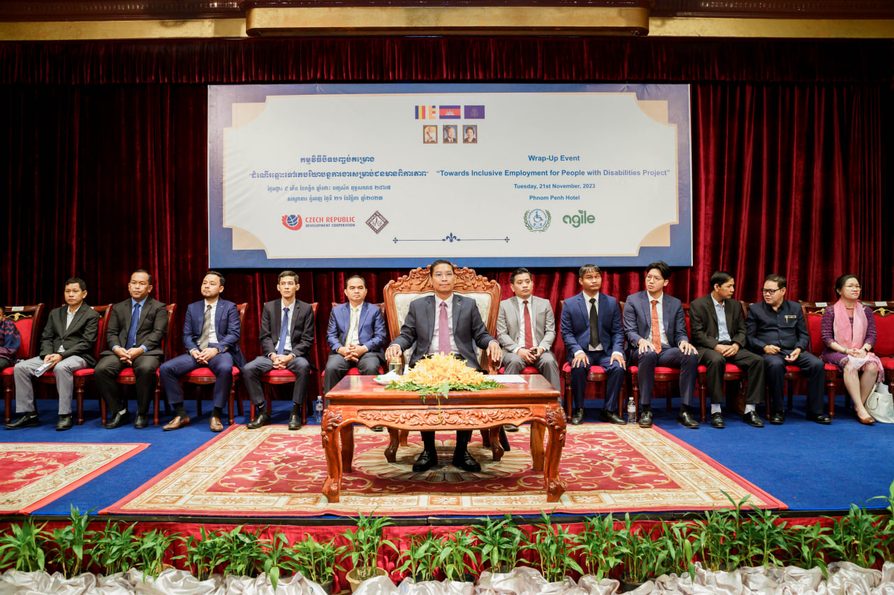 Phnom Penh, November 21, 2023 – Addressing the audience at the Phnom Penh Hotel during the commemoration of the successful completion of the project ‘Towards Inclusive Employment for People with Disabilities,’ H.E Em Chan Makara, Secretary of State and Secretary General of the Disability Action Council, stressed the imperative of concerted efforts to prioritize inclusive employment for people with disabilities in anticipation of the evolving labor market.