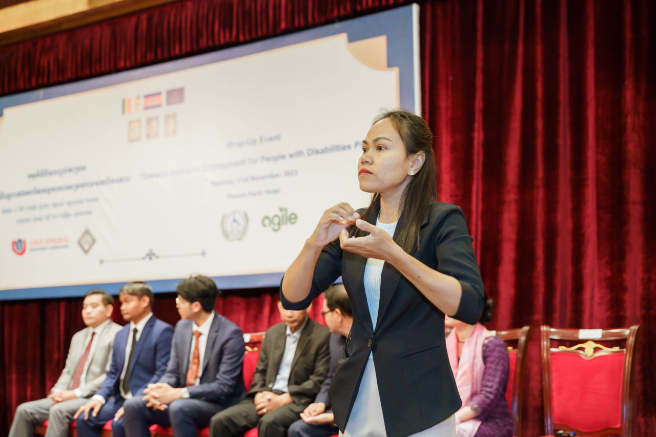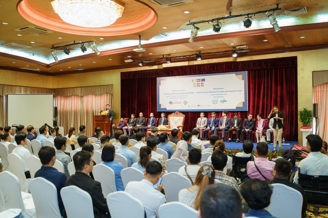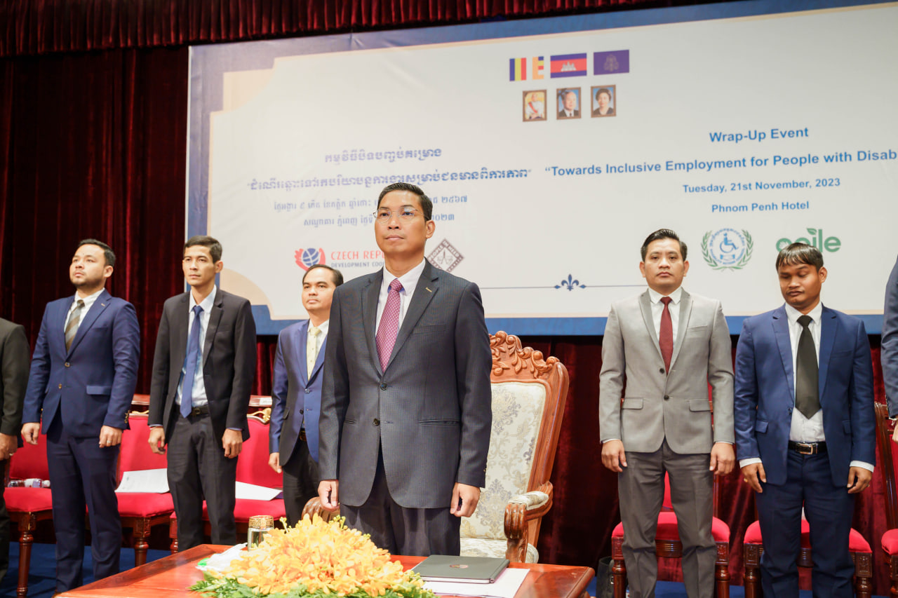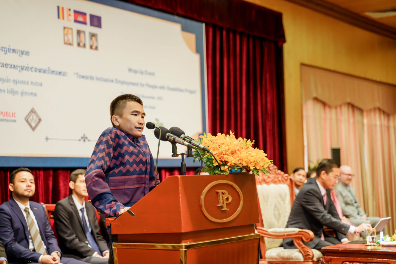 Phnom Penh, November 21, 2023 – Addressing the audience at the Phnom Penh Hotel during the commemoration of the successful completion of the project ‘Towards Inclusive Employment for People with Disabilities,’ H.E Em Chan Makara, Secretary of State and Secretary General of the Disability Action Council, stressed the imperative of concerted efforts to prioritize inclusive employment for people with disabilities in anticipation of the evolving labor market.