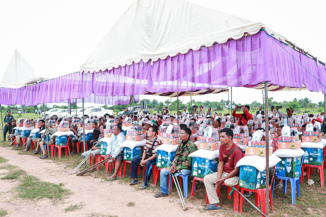 During this visit, H.E. Kun Kim extended support to 104 families by providing essential supplies. Each family received a generous distribution, including 25 kg of rice, 1 package of canned fish, 1 package of fish sauce, 1 package of soy sauce, 1 package of pure water, and a variety of plant seeds.