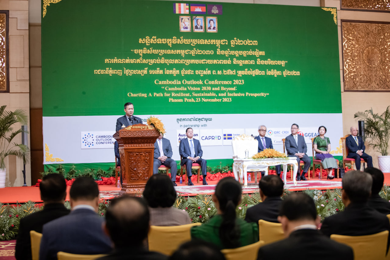 Phnom Penh – His Excellency Chea Somethy, Minister of Social Affairs, Veterans and Youth Rehabilitation, accompanied Prime Minister Samdech Hun Manet at the Cambodia Outlook 2023 Conference, themed ‘Cambodia Vision 2030 and Beyond: Charting a Path for Resilient, Sustainable, and Inclusive Prosperity.’