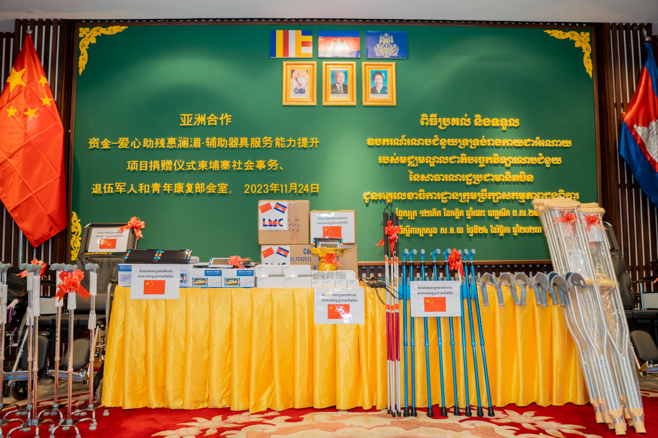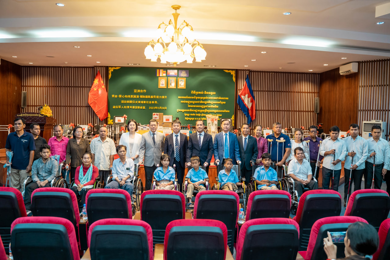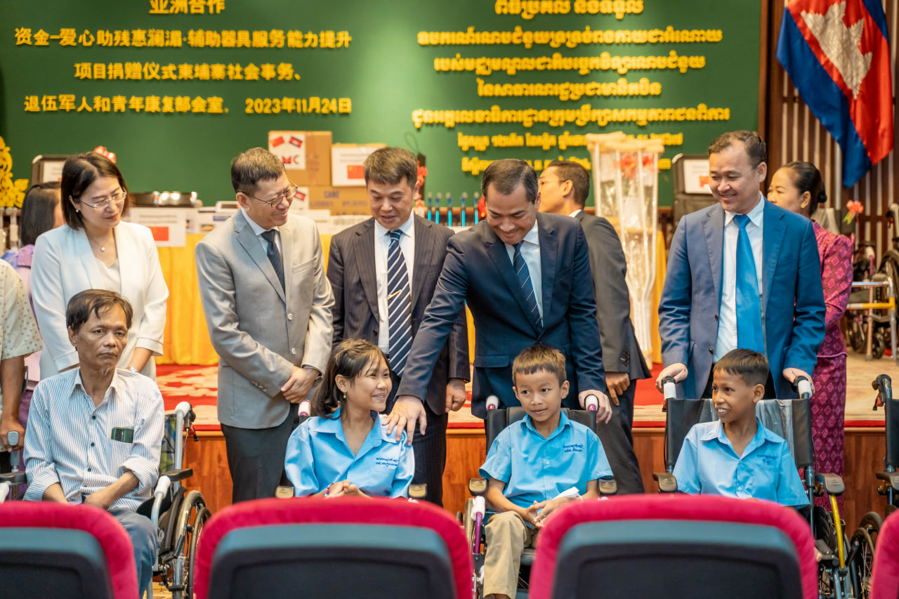 Phnom Penh – In a meaningful ceremony, the China Assistive Devices and Technology Center (CADTC) generously donated assistive devices to individuals with disabilities in Cambodia. The event, held on the morning of November 24, 2023, at the Ministry of Social Affairs, Veterans and Youth Rehabilitation, was presided over by H.E Chea Somethy, Minister of Social Affairs, Veterans and Youth Rehabilitation, and Chairman of the Disability Action Council.