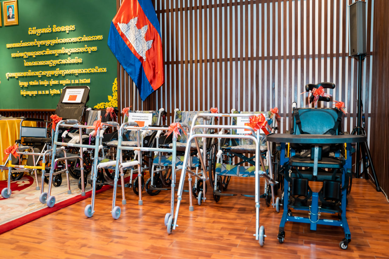 H.E Em Chan Makara, Secretary of State of the Ministry of Social Affairs, Veterans and Youth Rehabilitation, and Secretary General of the Disability Action Council, outlined plans to distribute the donated assistive devices to 11 rehabilitation centers, spinal cord injury centers, and various national and international NGOs working in the field.