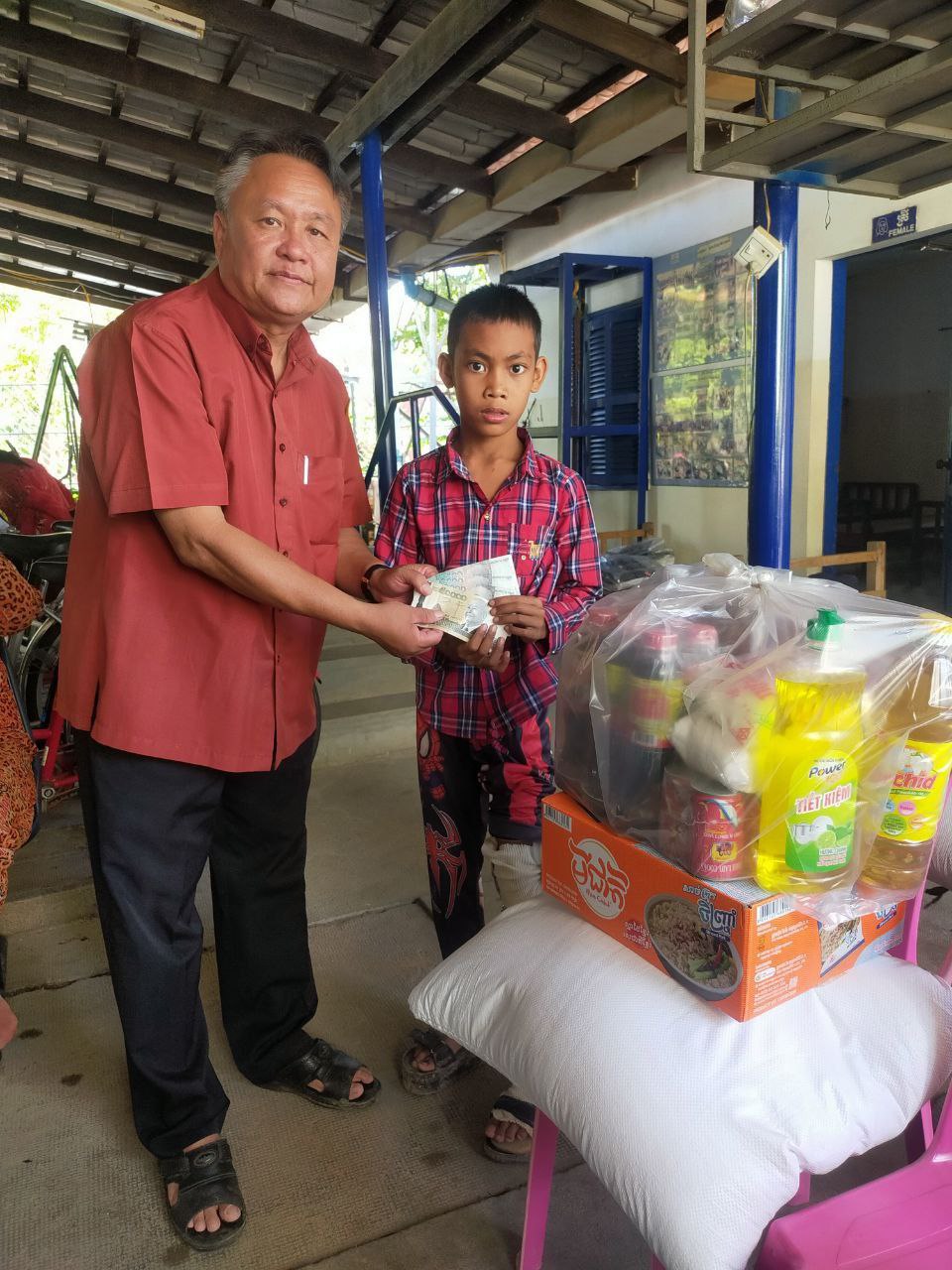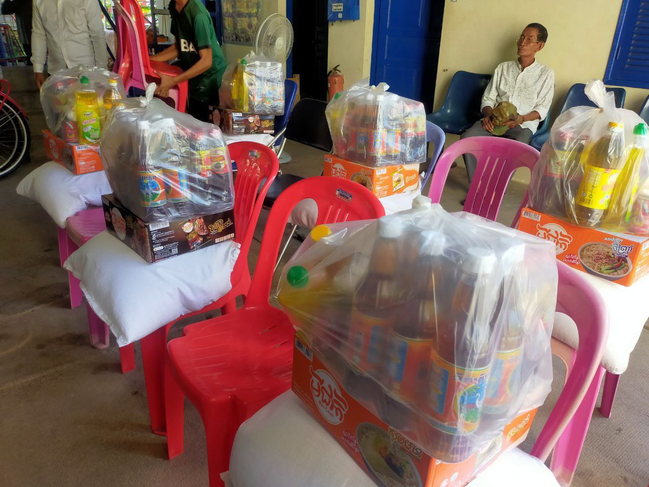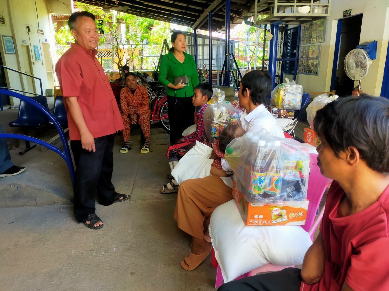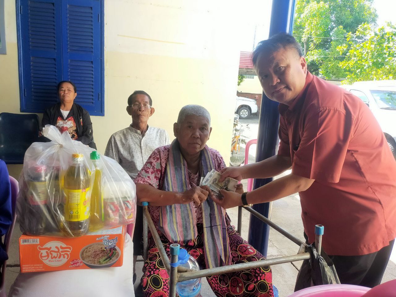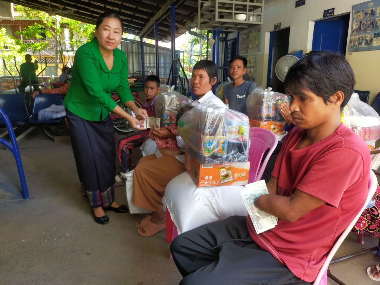 Kampong Chhnang Province, November 8, 2023: The Department of Social Affairs, Veterans and Youth Rehabilitation in Kampong Chhnang gratefully accepts donations from philanthropists residing in the United States. Mrs. Suon Sokha, Deputy Chief of the Provincial Rehabilitation Office, facilitates the distribution of aid to six families with disabilities. Each family is presented with essential provisions, including 25 kg of rice, one package of instant noodles, a package of fish sauce, a package of soy sauce, a bottle of dish soap, a bottle of cooking oil, a bag of SMG, and a budget of 80,000 riels.
