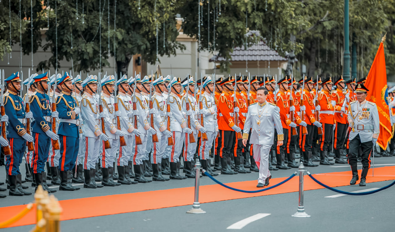 During the commemoration of the 70th Anniversary of the Establishment of the Royal Cambodian Armed Forces in front of the Royal Palace, Prime Minister Hun Manet affirmed the commitment of the seventh mandate government to achieving lasting peace, independence, sovereignty, and national developments. The aim is to build a progressive, strong, liberal, multi-party democracy based on the law, ensuring prosperity, dignity, and respect for human rights.