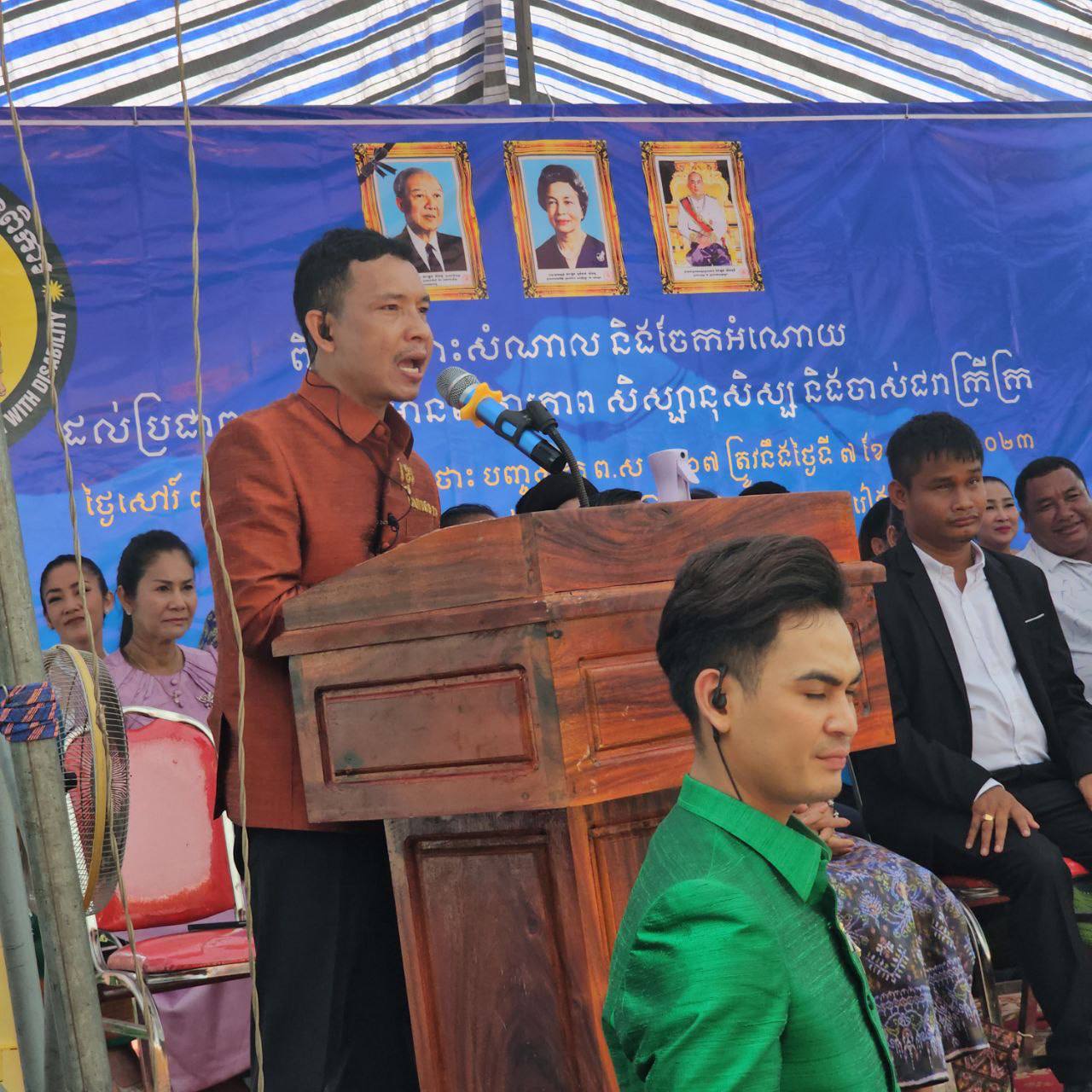 ស្វាយរៀង៖ នៅព្រឹកថ្ងៃទី៧ ខែតុលា ឆ្នាំ២០២៣ ឯកឧត្តម ចាប តូ អនុរដ្ឋលេខាធិការក្រសួងសង្គមកិច្ច អតីតយុទ្ធជន និងយុវនីតិសម្បទា ព្រមទាំងថ្នាក់ដឹកនាំ មន្ត្រីរាជការក្នុងខេត្តស្វាយរៀង រៀបចំពិធីសំណេះសំណាលជាមួយជនមានពិការភាព លោកគ្រូ អ្នកគ្រូ និងសិស្សានុសិស្ស ចំនួន ៣៥០នាក់។