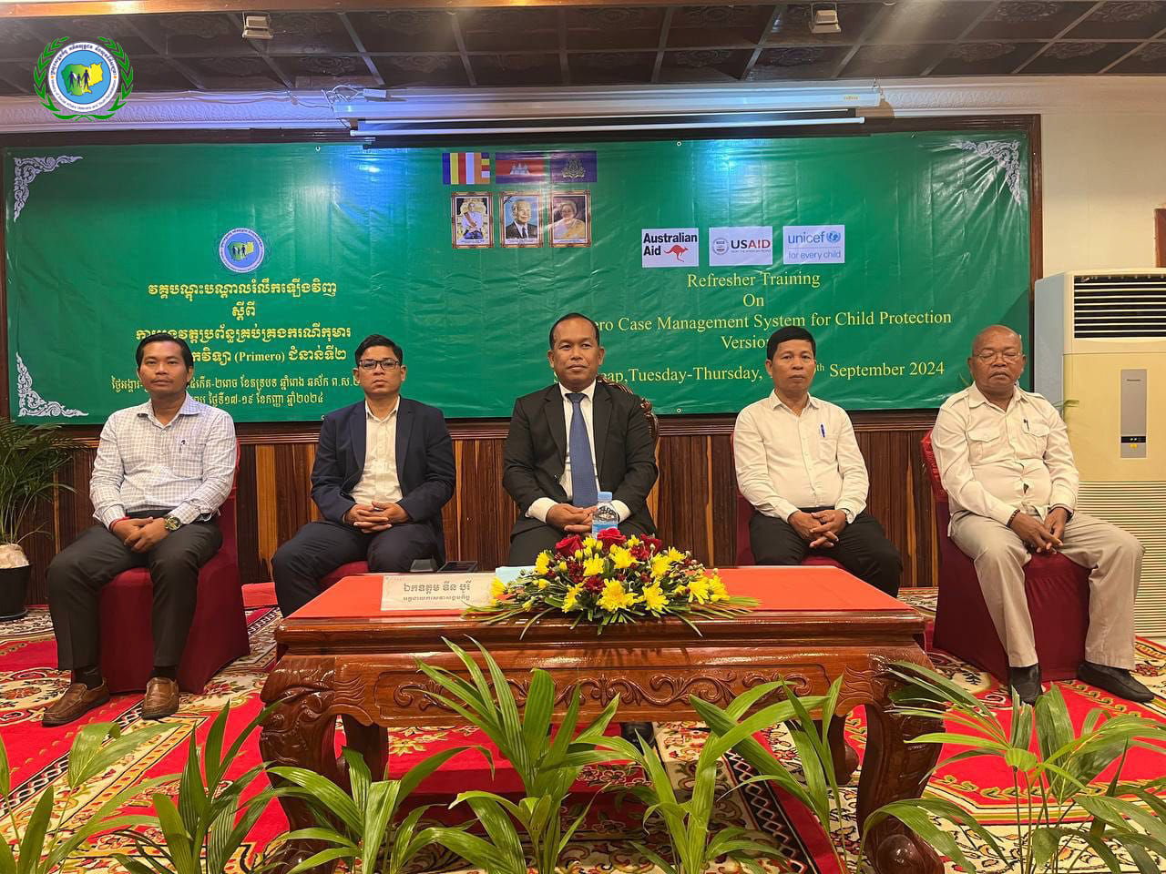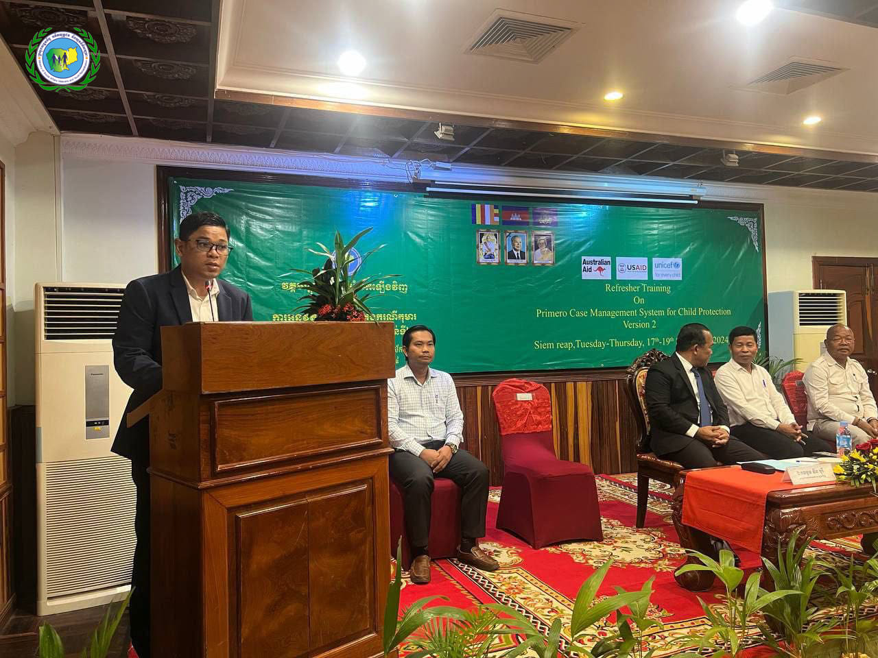ខេត្ដសៀមរាប ៖ ថ្ងៃអង្គារ ១៥កេីត ខែភទ្របទ ឆ្នាំរោង ឆស័ក ព.ស. ២៥៦៨ ត្រូវនឹងថ្ងៃទី១៧ ខែកញ្ញា ឆ្នាំ២០២៤ ដោយបានទទួលការអនុញ្ញាតដ៏ខ្ពង់ខ្ពស់ពី ឯកឧត្ដម ជា សុមេធី រដ្ឋមន្ត្រីក្រសួងសង្គមកិច្ច អតីតយុទ្ធជន និងយុវនីតិសម្បទា ឯកឧត្តម ឌីន បូរី អគ្គនាយកសេវាសង្គមកិច្ច បានអញ្ជើញជាអធិបតីភាពក្នុងពិធីបើកវគ្គបណ្ដុះបណ្ដាលរំលឹកឡើងវិញស្ដីពីការអនុវត្ដប្រព័ន្ធគ្រប់គ្រងករណីកុមារតាមបច្ចេកវិទ្យា Primero ដល់មន្ត្រីនៃមន្ទីរ ស.អ.យ. និងរដ្ឋបាលក្រុង ស្រុក ខេត្តបន្ទាយមានជ័យ និងខេត្តសៀមរាប ដោយមានការចូលរួមពីមន្ត្រីជំនាញនៃនាយកដ្ឋានកិច្ចការពារកុមារ អង្គការយូនីសេហ្វ ជាអ្នកសម្របសម្រួល (គ្រូឧទ្ទេស) និងមន្រ្ដីបង្គោលនៃមន្ទីរ ស.អ.យ.ខេត្ដ មន្រ្ដីបង្គោលនៃការិយាល័យសង្គមកិច្ច និងសុខុមាលភាពសង្គមក្រុង ស្រុក នៃខេត្ដបន្ទាយមានជ័យ និងខេត្ដសៀមរាប ជាសិក្ខាកាម សរុបចំនួន ៣៣នាក់ ស្រី ១៣នាក់។