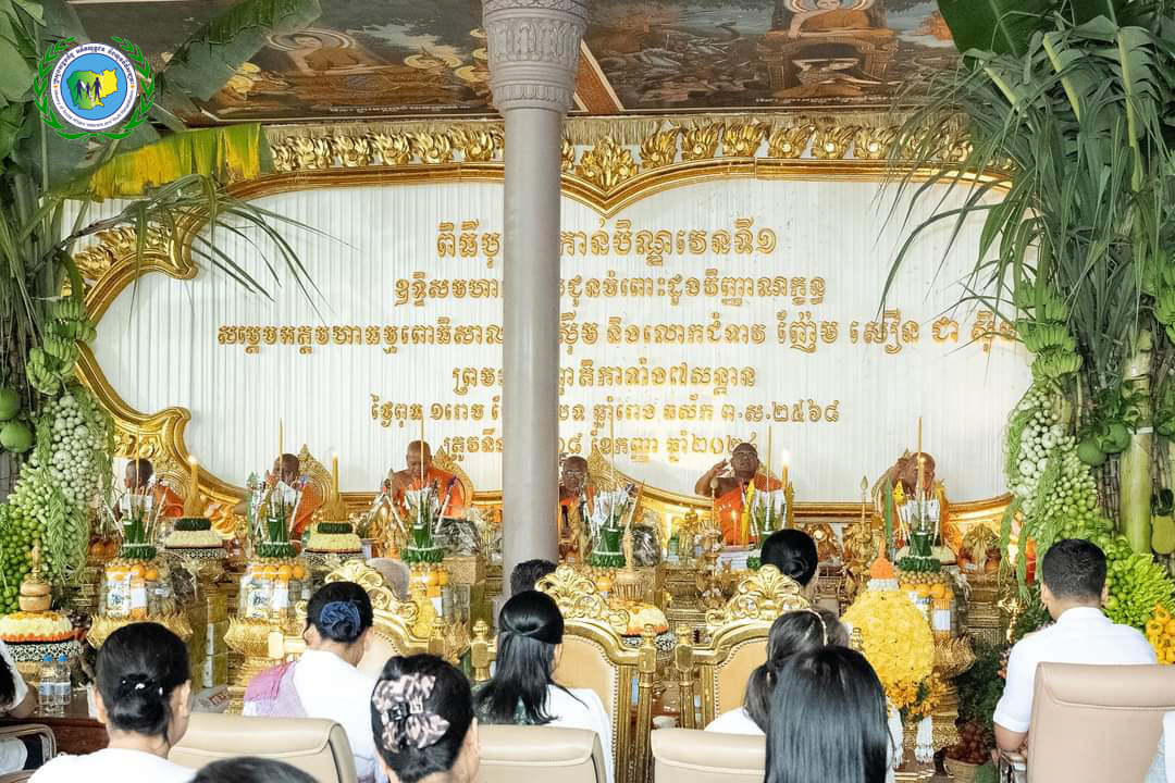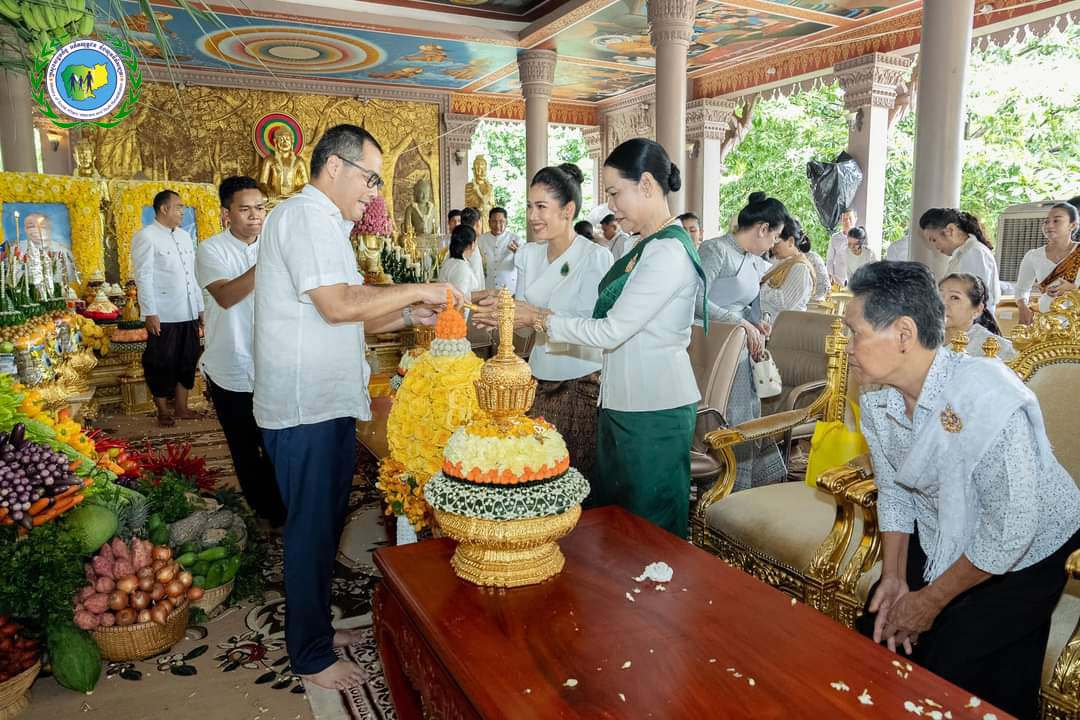 ព្រឹកថ្ងៃពុធ ១រោច ខែភទ្របទ ឆ្នាំរោង ឆស័ក ពុទ្ធសករាជ ២៥៦៨ ត្រូវនឹងថ្ងៃទី១៨ ខែកញ្ញា ឆ្នាំ២០២៤ ឯកឧត្តម ជា សុមេធី រដ្ឋមន្រ្តីក្រសួងសង្គមកិច្ច អតីតយុទ្ធជន និងយុវនីតិសម្បទា និងលោកជំទាវ ជា ផល្គុន និងក្រុមគ្រួសារ បានអញ្ជើញចូលរួមជាមួយ ឯកឧត្តមអភិសន្តិបណ្ឌិត ស សុខា ឧបនាយករដ្ឋមន្ត្រី រដ្ឋមន្ត្រីក្រសួងមហាផ្ទៃ និងលោកជំទាវ ព្រមទាំងវត្តមានដ៏ខ្ពង់ខ្ពស់ លោកជំទាវ ញ៉ែម សាខន ស ខេង បានអញ្ជើញចូលរួមក្នុងពិធីបុណ្យកាន់បិណ្ឌទី១ ឧទ្ទិសមហា កុសលជូនចំពោះដួងវិញ្ញាណក្ខន្ធសម្តេចអគ្គមហាធម្មពោធិសាល ជា ស៊ីម និងលោកជំទាវ ញ៉ែម សឿន ជា ស៊ីម ព្រមទាំងញាតិកាទាំង ៧សន្តាន ដែលបានចែកឋានទៅកាន់លោកខាងមុខ នៅចេតិយ៍ស្ថិតក្នុងភូមិជ្រៅ ឃុំក្របៅ ស្រុកកំចាយមារ ខេត្តព្រៃវែង៕