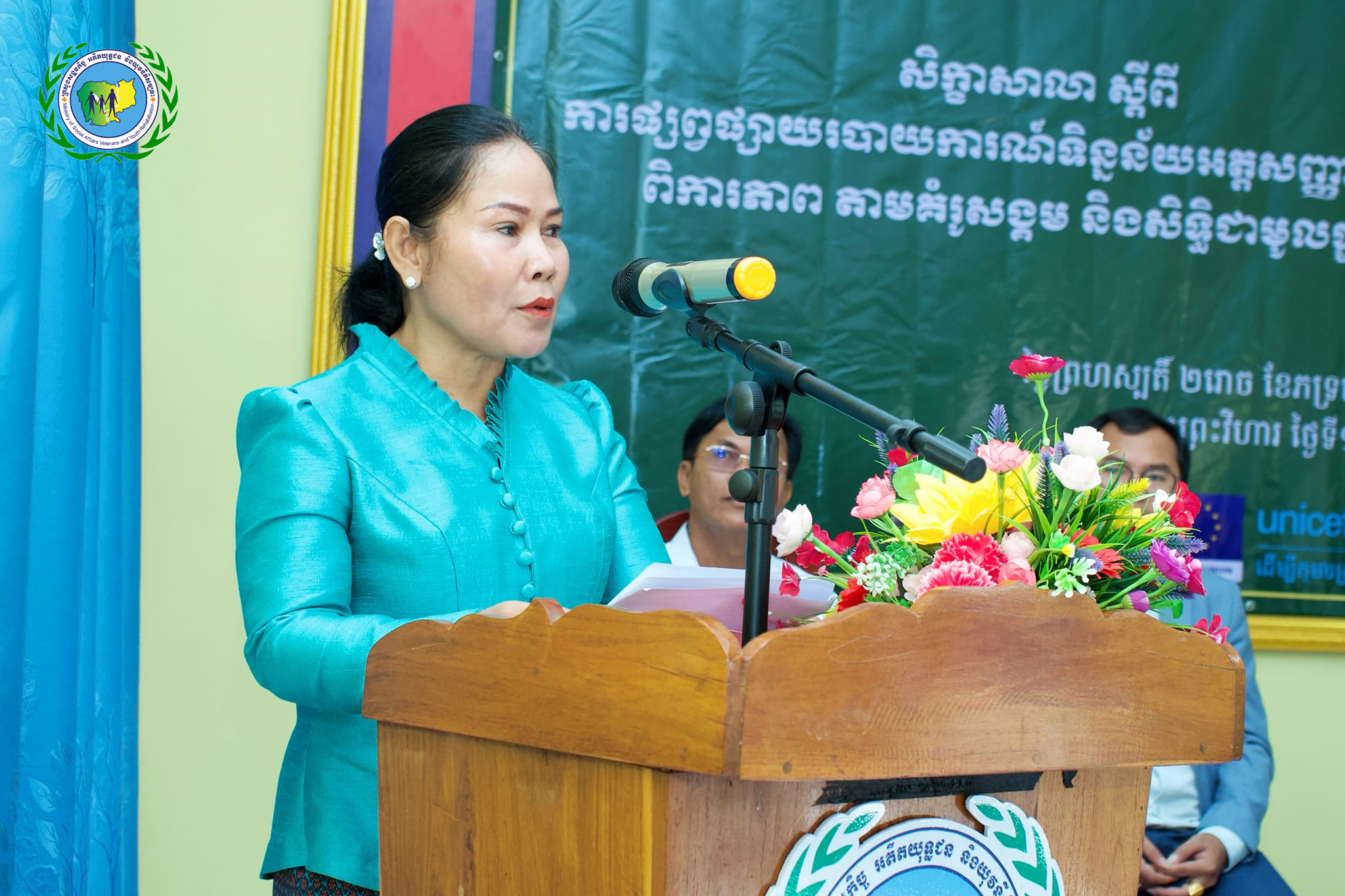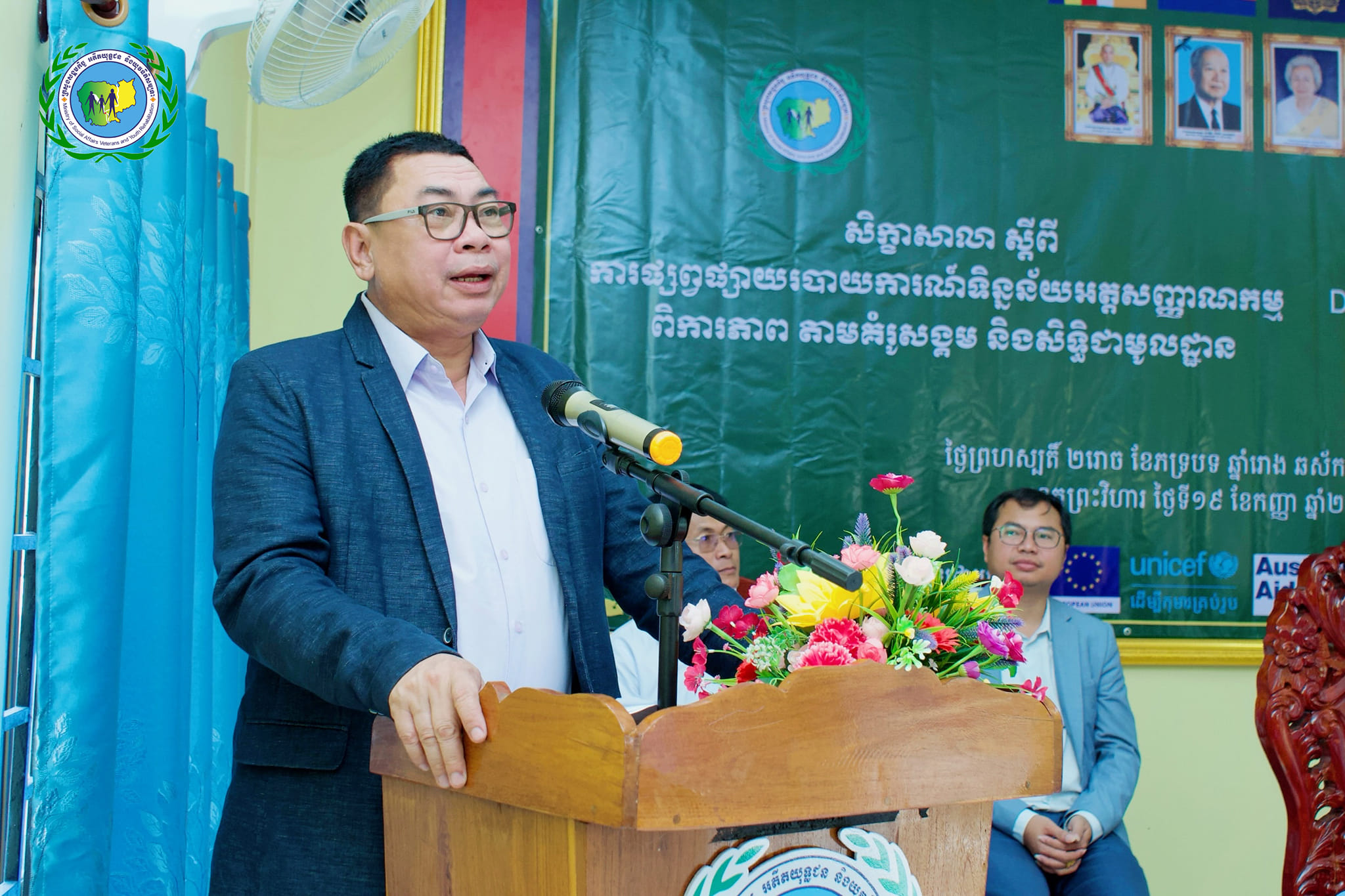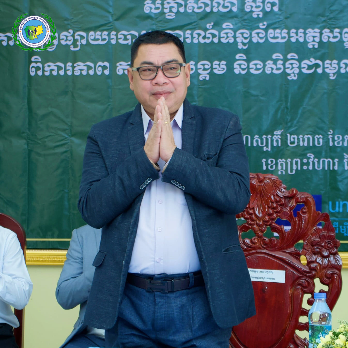 ព្រះវិហារ៖ ថ្ងៃព្រហស្បតិ៍ ២ រោច ខែភទ្របទ ឆ្នាំរោង ឆស័ក ពុទ្ធសករាជ ២៥៦៨ ត្រូវនឹងថ្ងៃទី១៩ ខែកញ្ញា ឆ្នាំ២០២៤ ដោយទទួលបានការអនុញ្ញាតដ៏ខ្ពង់ខ្ពស់ពី ឯកឧត្តម ជា សុមេធី រដ្ឋមន្រ្តីក្រសួងសង្គមកិច្ច អតីតយុទ្ធជន និងយុវនីតិសម្បទា ឯកឧត្តម សន សុផល អគ្គនាយក នៃអគ្គនាយដ្ឋានស្តារសម្បទា អញ្ជើញជាគណៈអធិបតីក្នុងពិធីបើក សិក្ខាសាលាថ្នាក់ក្រោមជាតិស្តីពី ការផ្សព្វផ្សាយរបាយការណ៍ទិន្នន័យអត្តសញ្ញាណកម្មពិការភាពតាមគំរូសង្គម និងសិទ្ធិជាមូលដា្ឋន ដែលមានការចូលរួមពីលោកស្រី ប៉ាង រ៉ាវី អភិបាលរង នៃគណៈអភិបាលខេត្តព្រះវិហារ ប្រធាននាយកដ្ឋានសុខុមាលភាពជនពិការ ប្រធានមន្ទីរស.អ.យ. មន្ដ្រីសាខាមូលនិធិជាតិជំនួយសង្គម និងមន្ទីរពាក់ព័ន្ធ ក្រុង ស្រុក ជនបង្គោល ឃុំសង្កាត់ ចំណុះអោយរដ្ឋបាលខេត្តព្រះវិហារ ចំនួនប្រមាណ ១៥២នាក់។