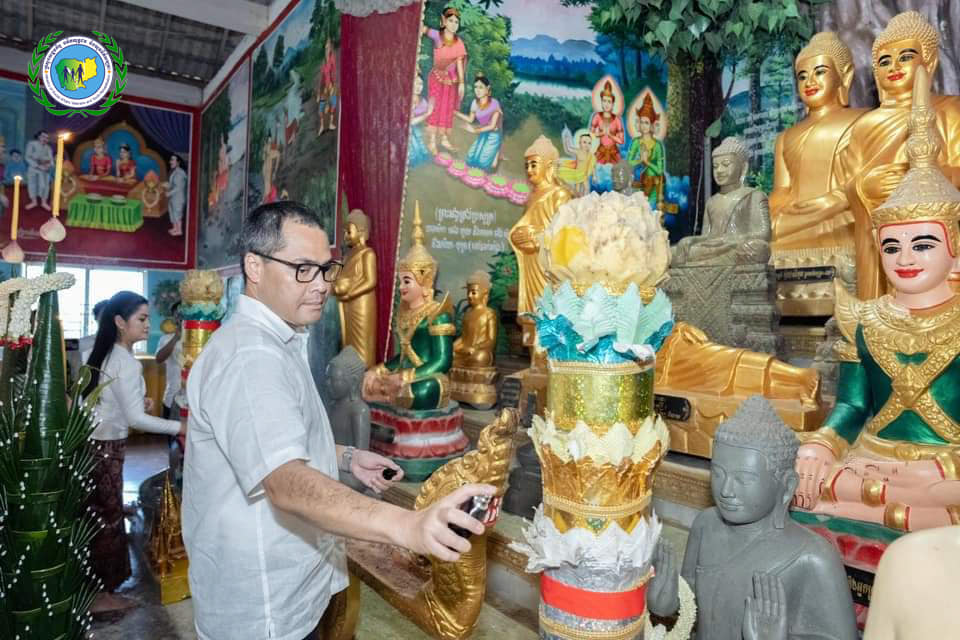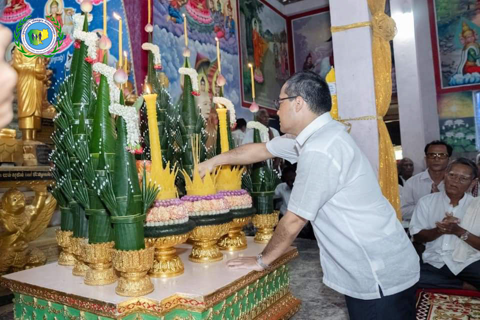 រសៀលថ្ងៃសៅរ៍ ៤រោច ខែភទ្របទ ឆ្នាំរោង ឆស័ក ពុទ្ធសករាជ ២៥៦៨ ត្រូវនឹងថ្ងៃទី២១ ខែកញ្ញា ឆ្នាំ២០២៤ ឯកឧត្តម ជា សុមេធី រដ្ឋមន្រ្តីក្រសួងសង្គមកិច្ច អតីតយុទ្ធជន និងយុវនីតិសម្បទា និងលោកជំទាវ ជា ផល្គុន ព្រមទាំងក្រុមគ្រួសារ បានអញ្ជើញចូលរួមជាមួយបងប្អូនប្រជាពុទ្ធបរិស័ទ ក្នុងពិធីបុណ្យសូត្រមន្តចម្រើនព្រះបរិត្តសម្រាប់ពិធីបុណ្យកាន់បិណ្ឌទី៥ ដែលនឹងប្រព្រឹត្តទៅនៅថ្ងៃអាទិត្យ ៤រោច ខែភទ្របទ ឆ្នាំរោង ឆស័ក ពុទ្ធសករាជ ២៥៦៨ ត្រូវនឹងថ្ងៃទី២២ ខែកញ្ញា ឆ្នាំ២០២៤ស្អែកនេះ នៅវត្តទួលសំពៅមាស ស្ថិតក្នុងឃុំអង្គរអង្គ ស្រុកពាមជរ ខេត្តព្រៃវែង ដើម្បីឧទ្ទិសមហាកុសលជូនចំពោះដួងវិញ្ញាណក្ខន្ធសម្តេចអគ្គមហាធម្មពោធិសាល ជា ស៊ីម និងលោកជំទាវ ញ៉ែម សឿន ជា ស៊ីម ព្រមទាំងញាតិកាទាំង ៧សន្តាន ដែលបានចែកឋានទៅកាន់លោកខាងមុខ និងសូមឱ្យដួងវិញ្ញាណក្ខន្ធសម្តេច និង លោកជំទាវ ព្រមទាំងញាតិកាទាំង ៧សន្តាន បានស្ថិតក្នុងឋានបរមសុខកុំបីឃ្លៀងឃ្លាតឡើយ៕