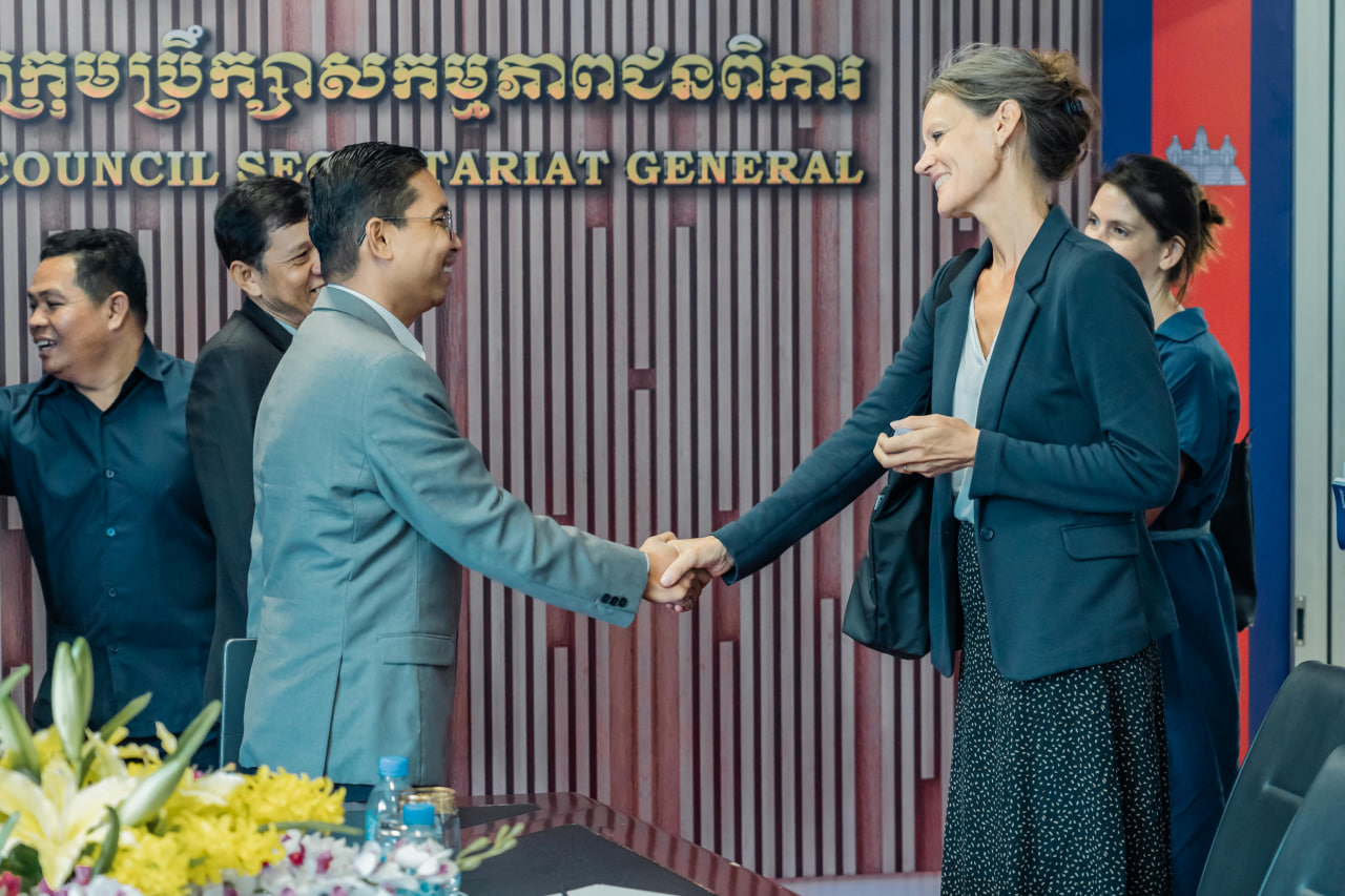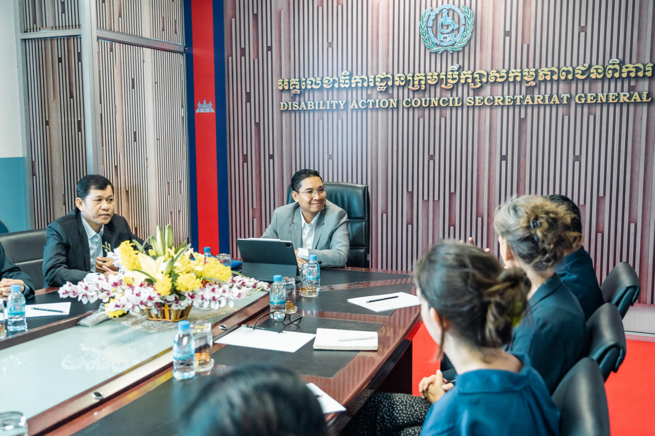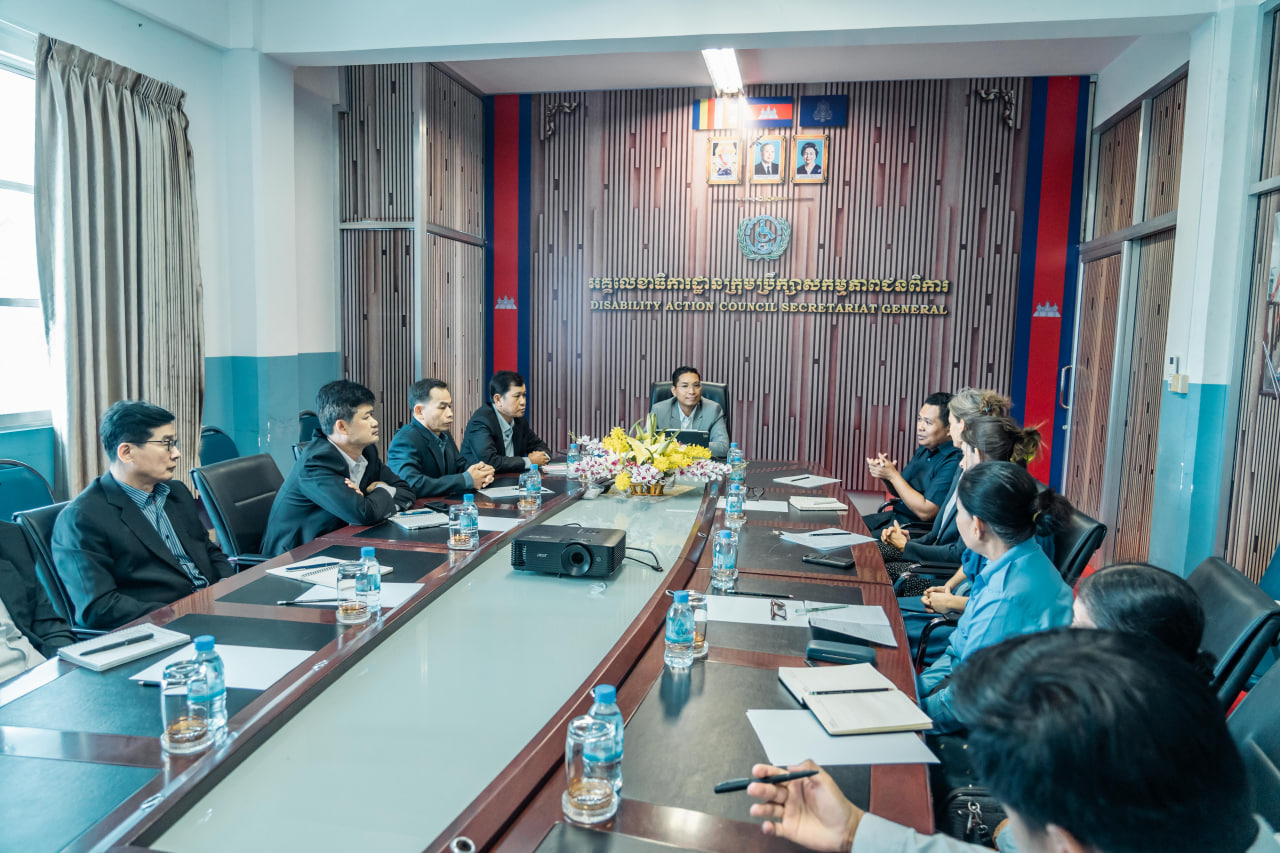 ភ្នំពេញ៖ នៅព្រឹកថ្ងៃពុធ ទី២៧ ខែកញ្ញា ឆ្នាំ២០២៣ រដ្ឋលេខាធិការក្រសួងសង្គមកិច្ច អតីតយុទ្ធជន និងយុវនីតិសម្បទានិងជាអគ្គលេខាធិការក្រុមប្រឹក្សាសកម្មភាពជនពិការ ឯកឧត្តម ឯម ច័ន្ទមករា ទទួលជួបពិភាក្សាការងារជាមួយលោកបណ្ឌិត គង់ វិចិត្រា ស្ថាបនិកអង្គការមូលនិធិកុមារពិការ និងលោកស្រី Giovanna Cowley ប្រធានកម្មវិធីនៃអង្គការដំណត់ទឹក នៅទីស្តីការក្រសួង។
