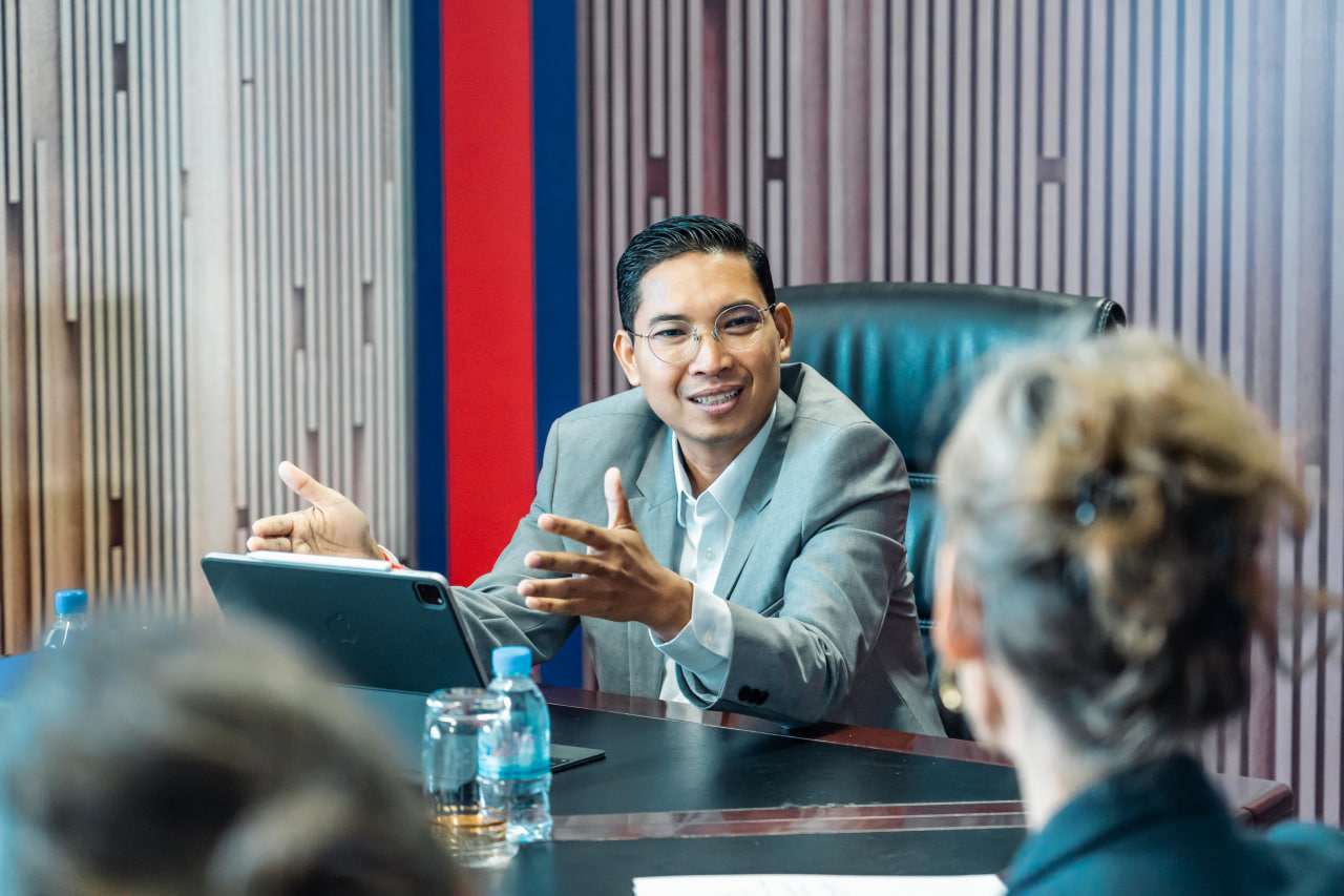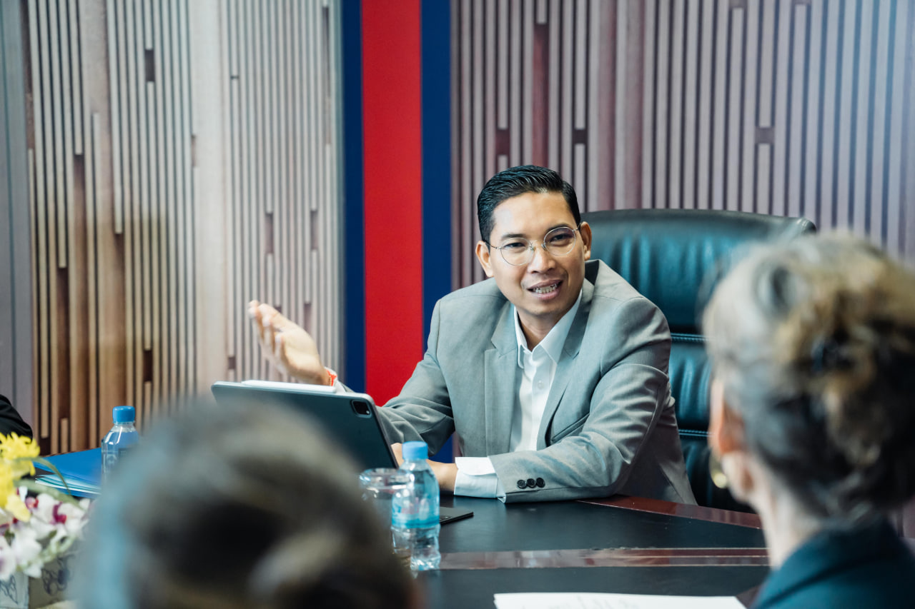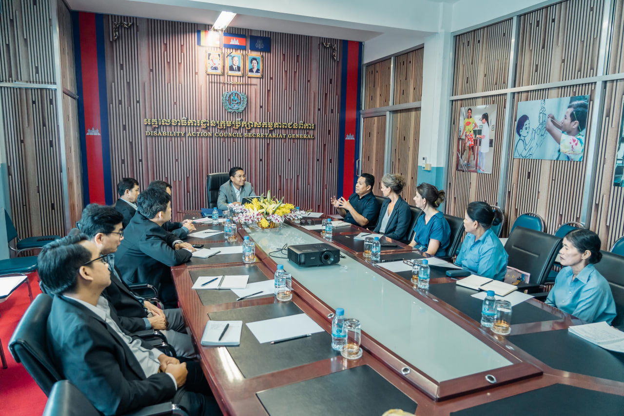 ភ្នំពេញ៖ នៅព្រឹកថ្ងៃពុធ ទី២៧ ខែកញ្ញា ឆ្នាំ២០២៣ រដ្ឋលេខាធិការក្រសួងសង្គមកិច្ច អតីតយុទ្ធជន និងយុវនីតិសម្បទានិងជាអគ្គលេខាធិការក្រុមប្រឹក្សាសកម្មភាពជនពិការ ឯកឧត្តម ឯម ច័ន្ទមករា ទទួលជួបពិភាក្សាការងារជាមួយលោកបណ្ឌិត គង់ វិចិត្រា ស្ថាបនិកអង្គការមូលនិធិកុមារពិការ និងលោកស្រី Giovanna Cowley ប្រធានកម្មវិធីនៃអង្គការដំណត់ទឹក នៅទីស្តីការក្រសួង។