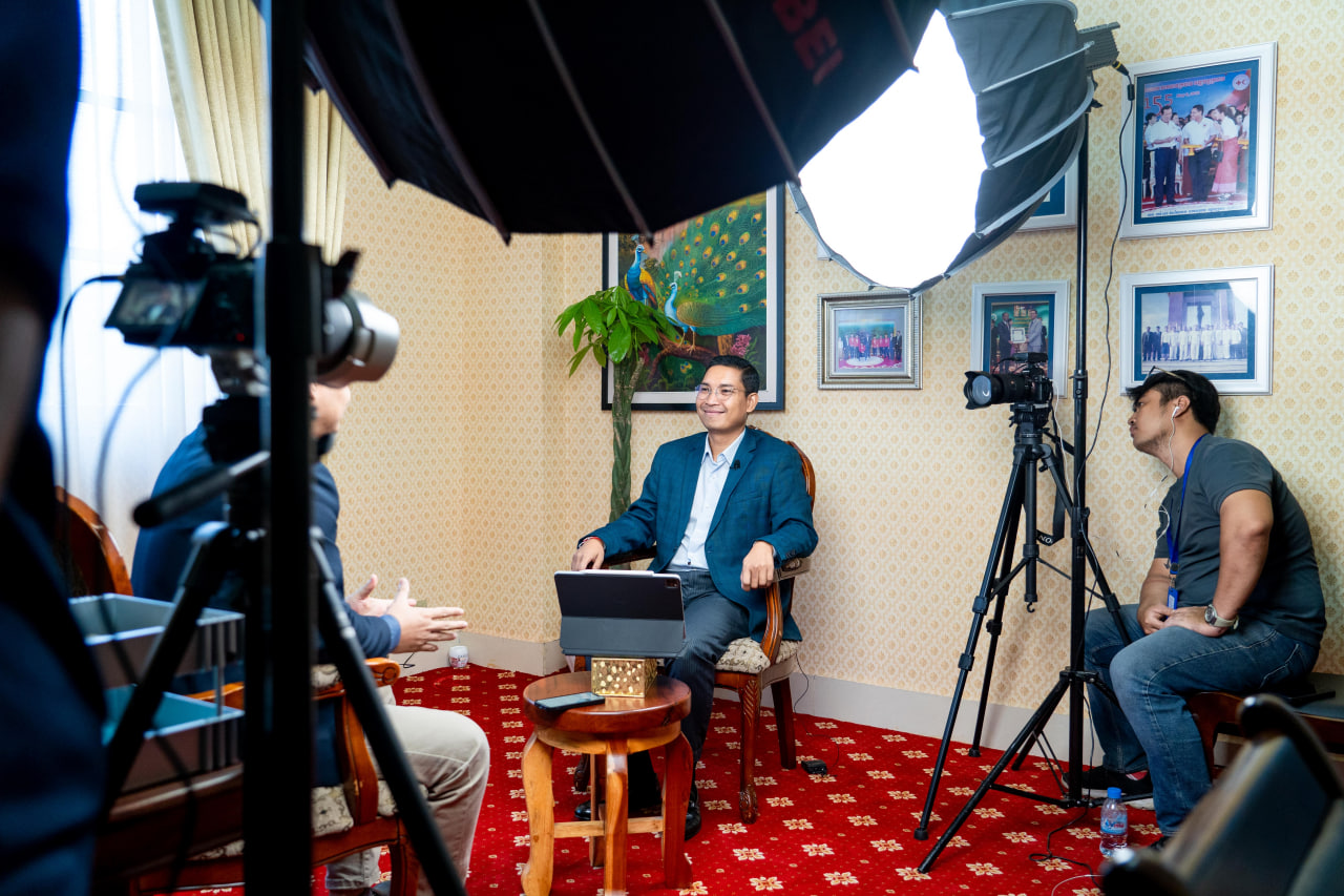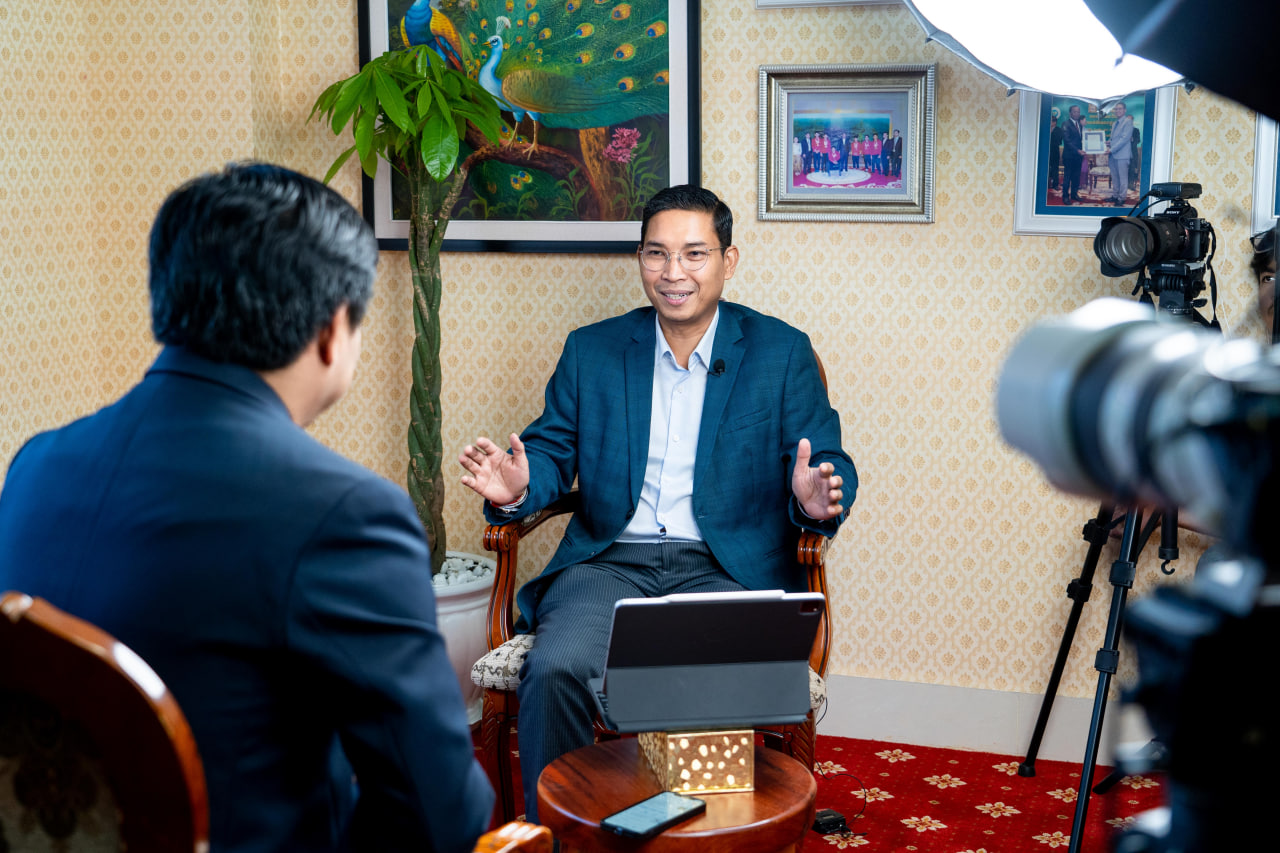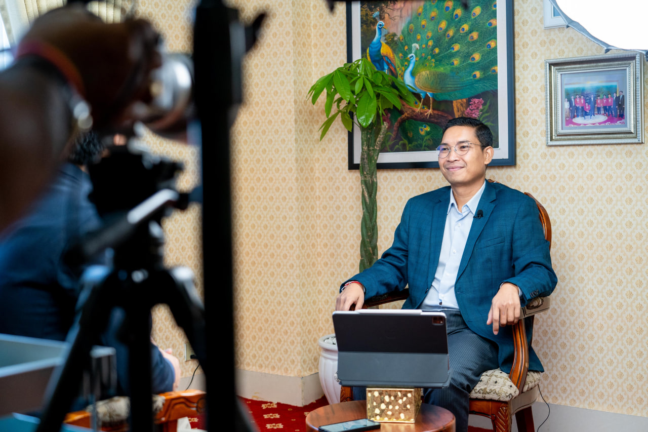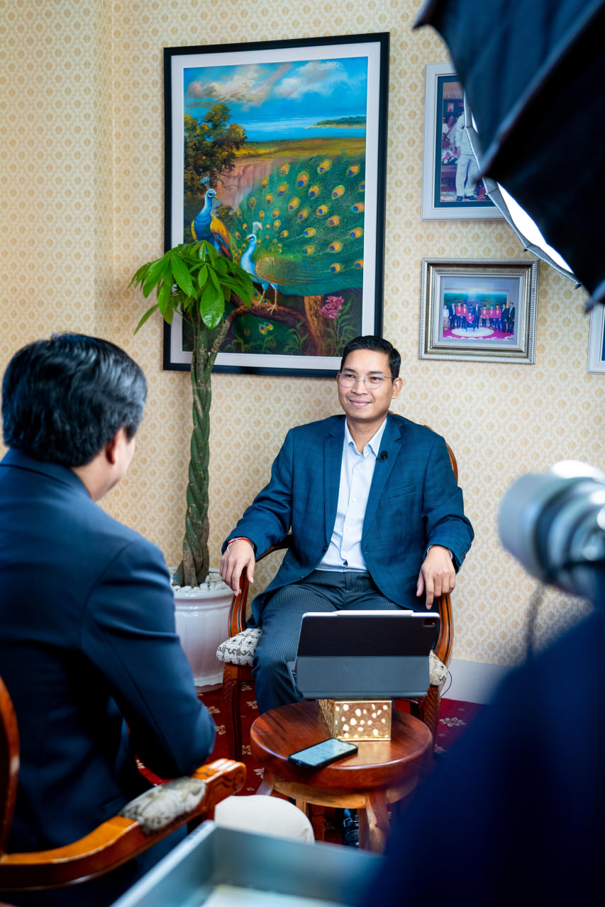 ភ្នំពេញ៖ រដ្ឋលេខាធិការនិងប្រធានក្រុមអ្នកនាំពាក្យរដ្ឋមន្ត្រីក្រសួងក្រសួងសង្គមកិច្ច អតីតយុទ្ធជន និងយុវនីតិសម្បទា ឯកឧត្តម ឯម ច័ន្ទមករា បានអញ្ជើញផ្តល់បទសម្ភាសន៍ជាមួយលោក វណ្ណ សុគន្ធា អ្នកសារព័ត៌មានពីអង្គភាពកម្ពុជាថ្មីជុំវិញប្រធានបទគាំពាំសង្គម និងអំពីយុទ្ធសាស្ត្រដោះស្រាយបញ្ហាស្មុគស្មាញរបស់ជនមានពិការភាពច្រៀងតាមផ្លូវ និងជនអនាថាក្នុងរាជធានីភ្នំពេញ នៅទីស្តីការក្រសួង។